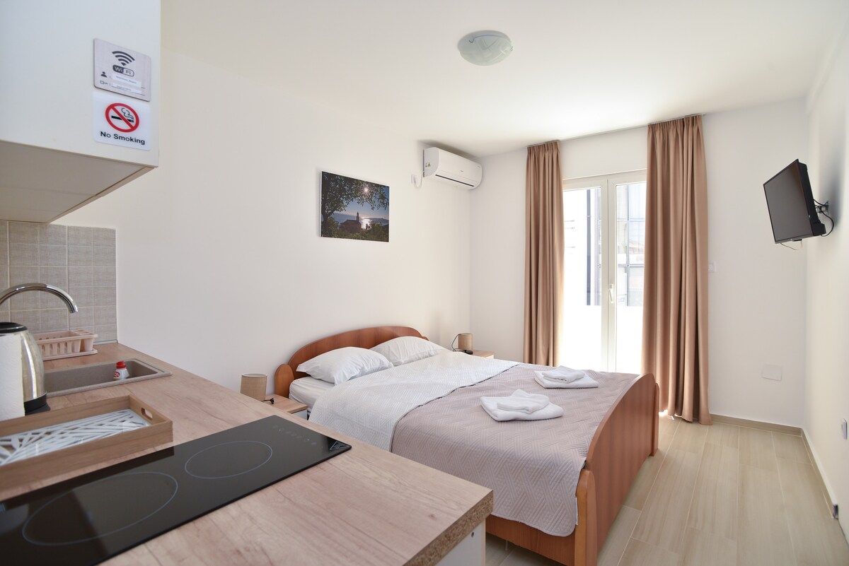Das Loft Studio bietet einen fantastischen Blick auf die Altstadt und die Bucht. Es ist neu gebaut, in der Gegend von alten Steinvillen. Nur 20 m vom Meer und 10 Gehminuten von der Altstadt entfernt. Voll ausgestattet. Balkon mit herrlicher Aussicht.