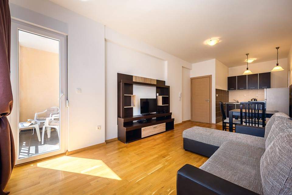 Just be happy in this spacious and serene space. The building is surrounded by olive trees, and in just 5 minutes walk, you will reach Becici beach, promenade, restaurants, supermarkets. The local bus stop is located 300 m from apartment, the Main Bus Station is 5 km away and Tivat Airport is 22 km away. The old town Budva is 5 km away. Guests are provided with free parking, LCD satellite tv, wi-fi, and as well as small items for everyday needs, such as hair dryers, irons, etc.