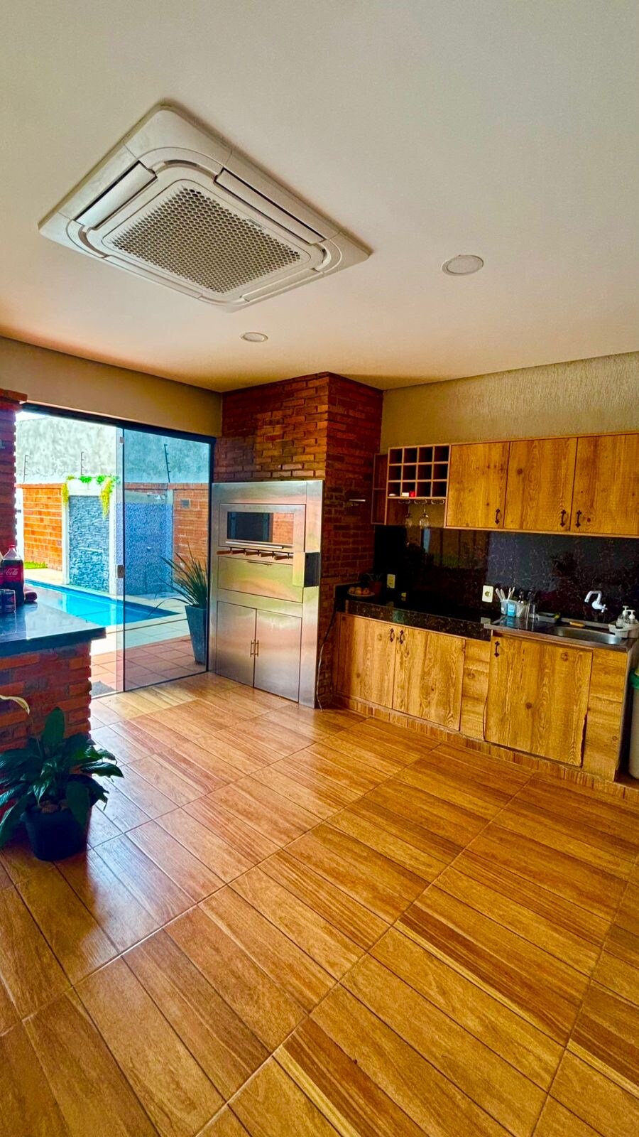 Patio grande + Hamacas bajo la sombra + Pileta Todo lo que necesitas para un finde relax Equipada con 5 aires de 18.000 BTU, termocalefón en todos los baños, piscina con filtro, parrilla de acero inoxidable, Fibra Optima 200 Megas + 130 Canales de TV + Netflix + Disney+ + Amazon Prime Hab 1: Master - Cama king (Entran varios colchones) Hab 2: Invitados - Cama Queen (Entran 2 colchones) Hab 3: Kids - 3 Camas Single Hab 4: Servicio - 1 Cama Single Terreno 1600 M2
