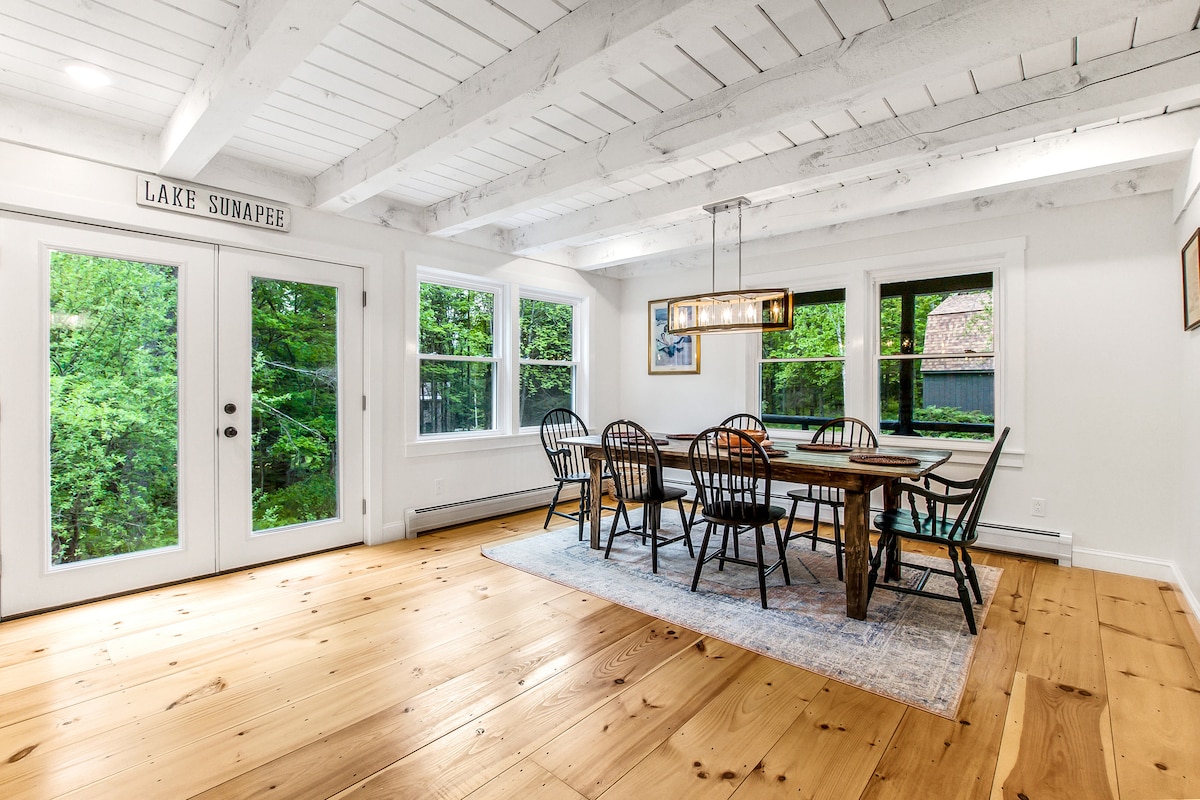 Willkommen bei „Sunapee Seasons“ – mit Blick auf Dewey Beach am Lake Sunapee und 8 Minuten vom Mount Sunapee entfernt, wobei jedes Themenzimmer eine ikonische Jahreszeit in dieser sich ständig verändernden Region feiert. Lass die Brise herein und entspanne dich drinnen ... oder geh einfach zum Sandstrand auf der anderen Straßenseite. Im Winter liegt der Berg Sunapee gleich die Straße hinauf, und im Herbst ist das gesamte Grundstück in Laub getaucht. Sobald du eine „Sunapee-Jahreszeit“ gesehen hast, wissen wir, dass du sie alle erleben möchtest!