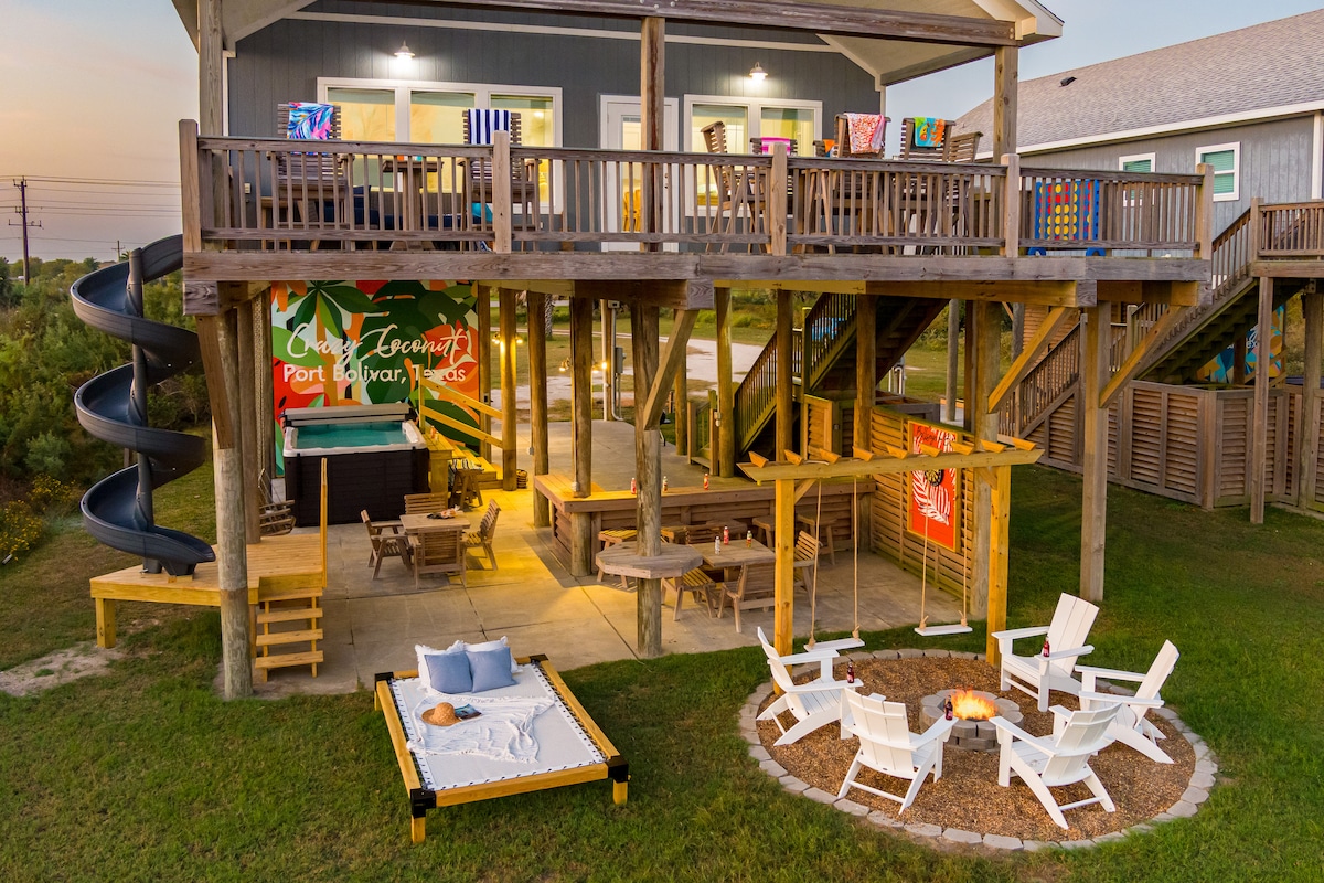 Willkommen im Yellow Rose by Bolivar Vacations – Ein wahres texanisches Juwel am Meer. Entspannen Sie sich im Yellow Rose, einem Strandhotel, das texanischen Charme mit Küstenkomfort verbindet. Dieses geräumige Refugium befindet sich im ruhigen Gilchrist und nur wenige Schritte vom Sand entfernt. Es bietet Platz für 12 Personen und verfügt über eine Gourmetküche, eine umlaufende Terrasse mit Meerblick und einen Unterhaltungsbereich im Freien mit Grill und Bar. Im Inneren erwarten Sie drei einladende Schlafzimmer, darunter ein gemütliches Zimmer mit Etagenbett, und Highspeed-WLAN für einfache Entspannung und Verbindung.