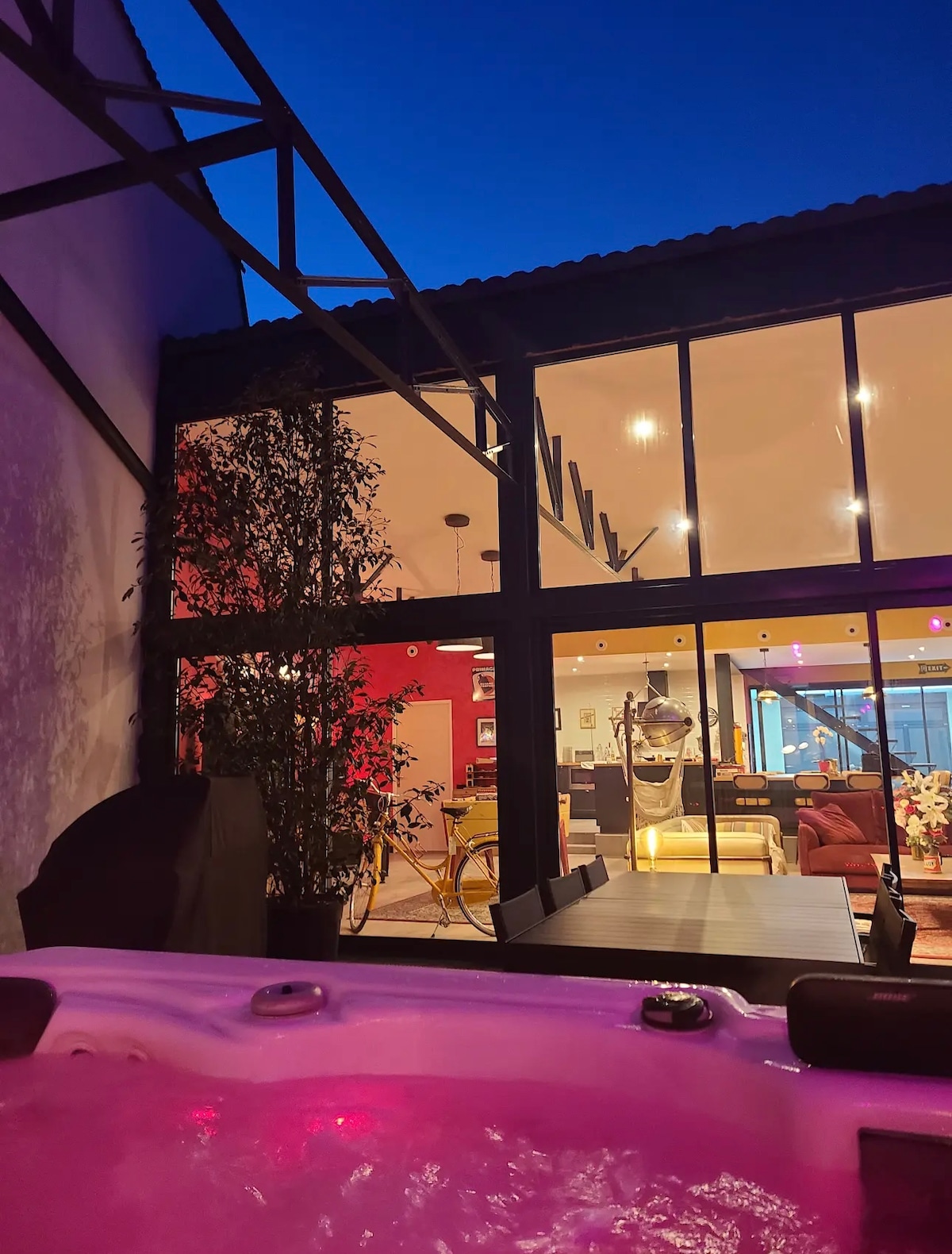 Entspannen Sie sich im w w w w . loft-spa-reims. fr, 250m2 privat und Parkplatz. AUSSEN-Spa ohne Gegenüber, beheizter Innenpool. Ein Schlafzimmer mit Kingsize-Bett, Ankleideraum und Duschbad. Zwei Schlafzimmer mit 160 x 200 Betten, eigenes Duschbad. Flipper, Tischfußball, Jukebox, um schöne Momente mit Freunden oder der Familie zu teilen! KEINE Partys erlaubt! Es ist verboten, Personen zu empfangen, die nicht in der Buchung vorgesehen sind, eine Kamera filmt den Außeneingang des Lofts. Illegale Aktivitäten verboten.