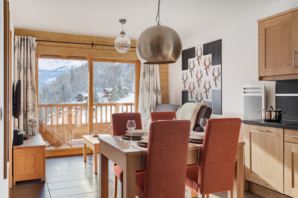 Appartement savoyard cosy au 1er étage. Au calme, voie sans issue, et résidentiel près du centre de la station. Vue dégagée sur la vallée de Courchevel. Orienté plein sud, la terrasse avec salon de jardin profite du soleil toute l'année. 2 chambres, une grande pièce ouverte sur cuisine, toute équipée, salle à manger et salon avec canapé lit. A 2mn à pied de la boulangerie, 5 du centre de la station et à 6 ou 7 du télécabine. WC séparé, salle d'eau avec douche à l'italienne.