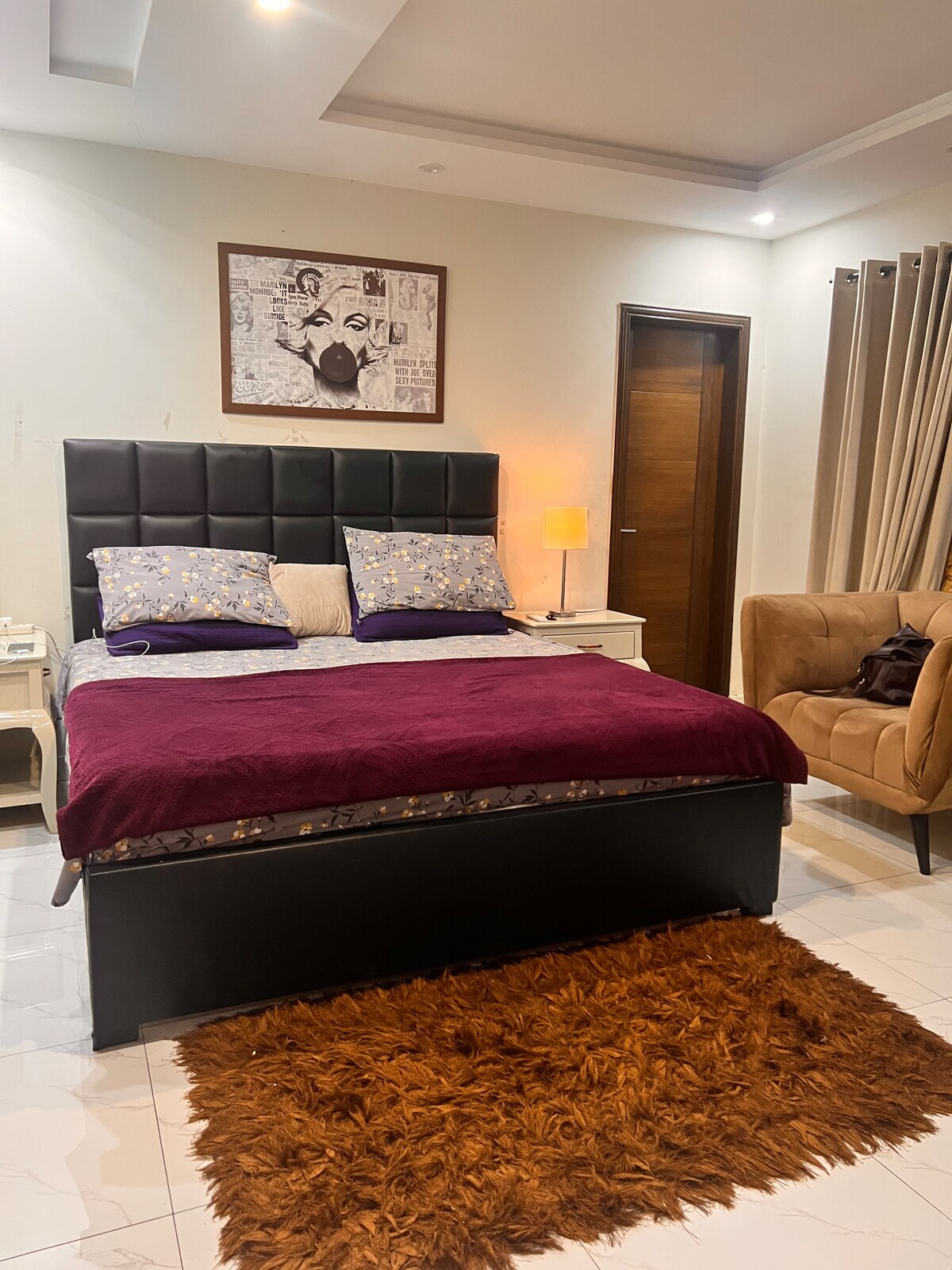 Welcome to your perfect getaway in Bahria Town, Lahore! Why You’ll Love This Space Prime Location – Just 2 minutes from Imtiaz Super Mart and 3 minutes from Ring Road, making it easy to explore the city. Comfort & Convenience – A king-size bed, high-speed WiFi, smart TV, and a mini bar for a relaxing stay. Surrounded by Amenities – Restaurants, cafes, grocery stores, and shopping centers are all within walking distance Book now and experience the best of Bahria Town!
