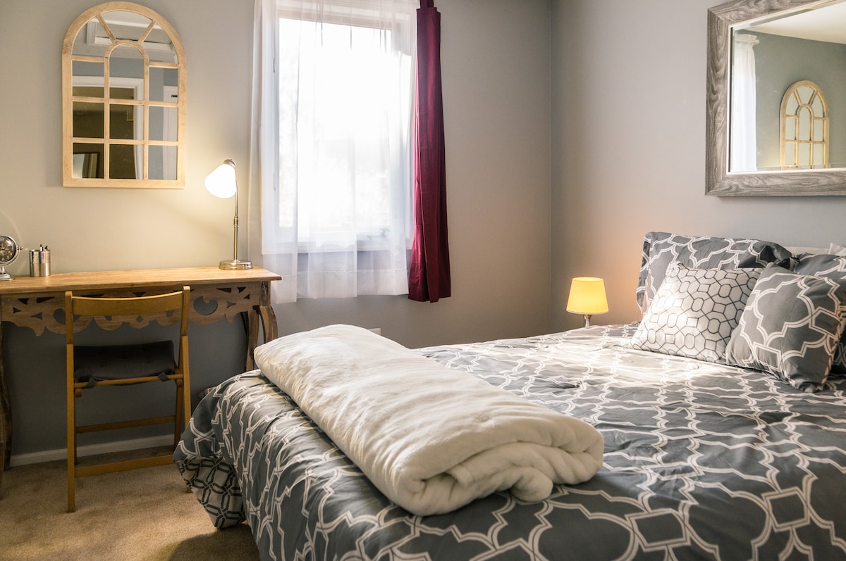 Lehne dich zurück und entspanne dich in dieser ruhigen, stilvollen Unterkunft und genieße einige süße Verwöhnmomente, mit denen du dich verwöhnen kannst, während du nicht zu Hause bist! Viele Gäste haben uns gesagt, dass die Farben, die einzigartige und geschmackvolle Einrichtung und der Raum sie in eine fröhliche Stimmung versetzen! :) Darüber hinaus sorgen verschiedene durchdachte Einbeziehungen für einen komfortablen, unterhaltsamen, unvergesslichen und entspannenden Aufenthalt, während du gleichzeitig innerhalb eines angemessenen Budgets bleibst.