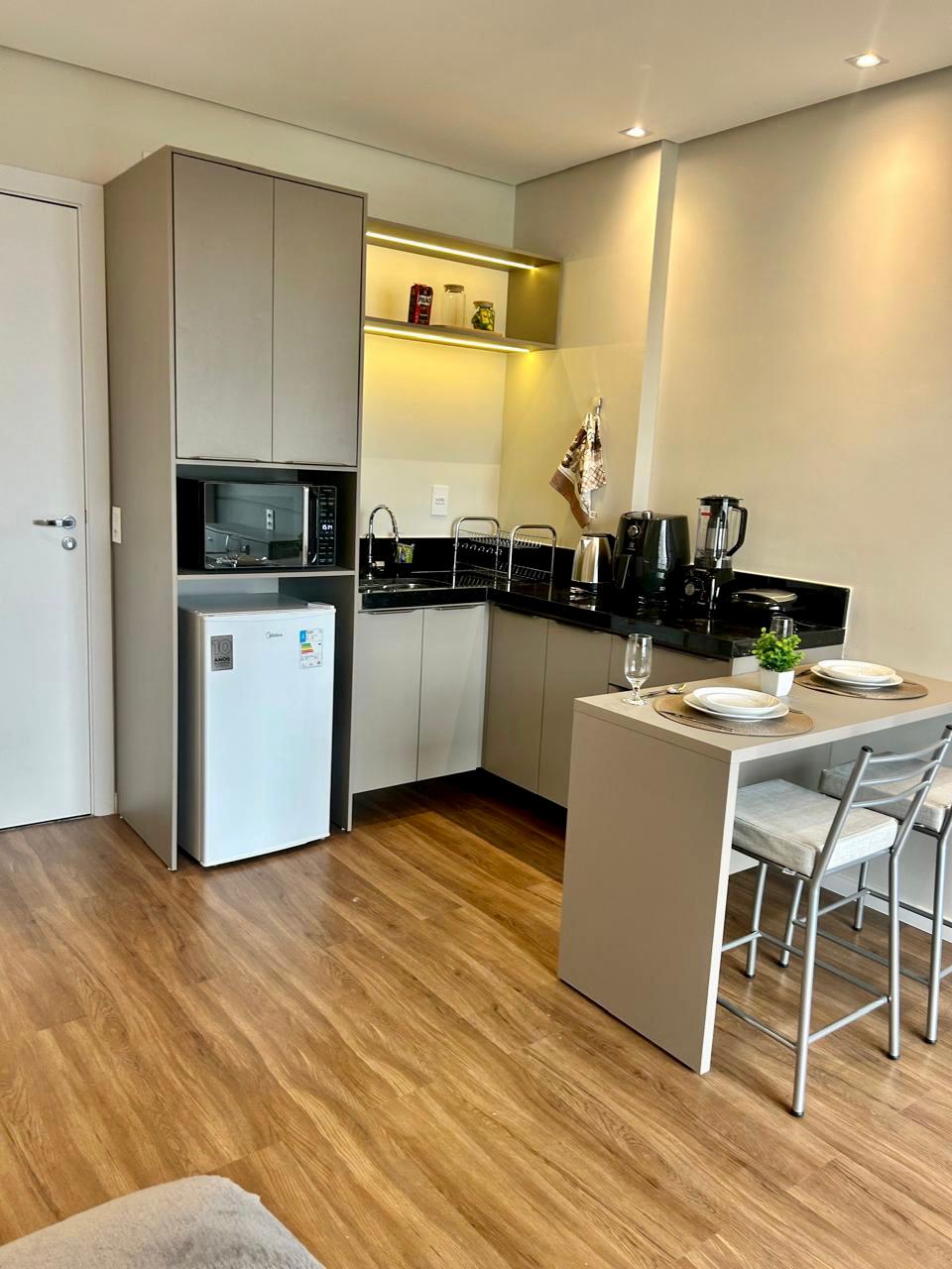 Estúdio moderno de 35m² em prédio 100% automatizado, com check-in digital e reconhecimento facial. Conta com cama queen + cama extra de solteiro, enxoval completo, Wi-Fi fibra, Smart TV, ar-condicionado e cozinha equipada. Estrutura completa: piscina com pôr do sol, academia Bodytech, coworking, skybar, mercadinho 24h, lavanderia OMO e estacionamento. Conforto, tecnologia e praticidade em um só lugar. ✨