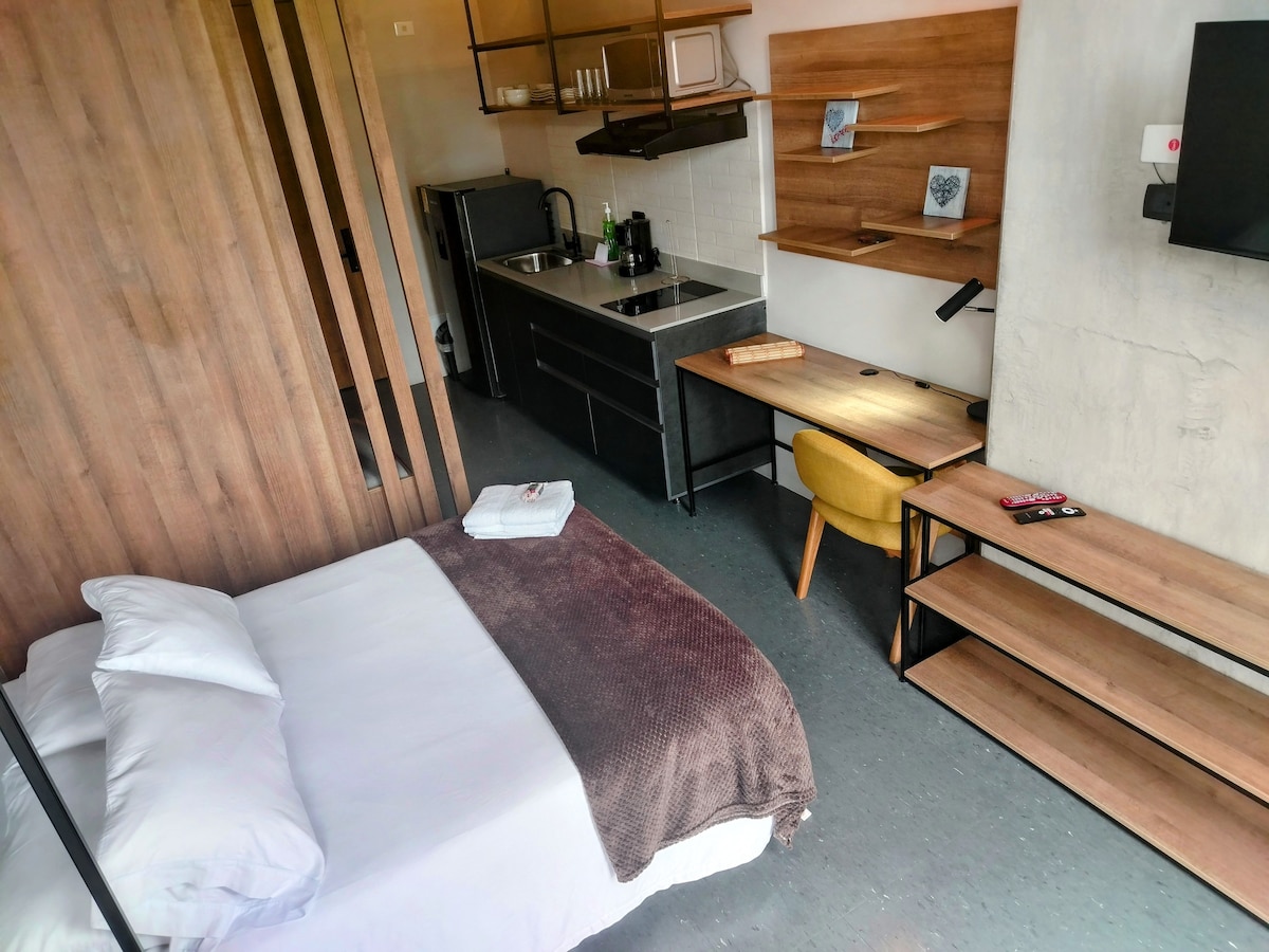WAS ZUR VERFÜGUNG GESTELLT WIRD •Apartaestudio 18 m2, Blick auf die Straße •WLAN, Smart-TV •Fitnessraum, azotea ¡bella vista! •Coworking, WLAN • Privates Badezimmer, heißes Wasser, Handtücher, Spiegel. •Ausgestattete Küche, Minikühlschrank, Mikrowelle • Töpfe, Teller, Besteck und Gläser •Waschsalon kostenpflichtig •Lage: 62nd Street mit 3. Chapinero •Zentral, Wachs in La Candelaria, Monserrate, Botero Museum, Plaza de Mercado de Paloquemao •Ruhige Gegend, 24-Stunden-Supermecado, Restaurants, Bars, Cafés NICHT ENTHALTEN •Parqueadero. Es gibt in der Umgebung