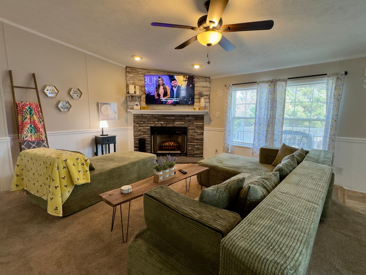 Du wirst dich sofort in diesem stilvollen, haustierfreundlichen Haus nur 8 Minuten von der I-70, Ausfahrt 42, entspannen. Unter einem Blätterdach von Bäumen findest du einen wunderschön angelegten Hof mit Terrassen und zwei Feuerstellenbereichen. Genieße die gut ausgestattete Küche mit Bio- und Fair-Trade-Kaffee. Entspanne dich mit 2 Roku-Fernsehern, Spielen und Puzzles, bade mit Einweichsalzen und türkischen Handtüchern. Für Outdoor-Enthusiasten: Schlage dein Zelt auf. Setz dich im Winter an den Holzofen oder leg dich in eine Hängematte, wenn es warm ist. Willkommen im Crooked Cottage!