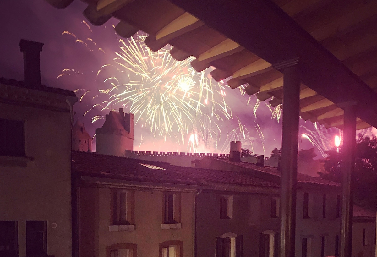 Ruhiges und helles Loft, komplett geschmackvoll renoviert im Herzen der mittelalterlichen Stadt Carcassonne mit Blick auf die Stadt vom Balkon. Ideal für Ihren Urlaub oder Geschäftsreise, um die Stadt Carcassonne und ihre Stadtmauern zu entdecken oder wiederzuentdecken. Die Lage ist ideal, um die Stadt zu Fuß zu entdecken. Einkaufsmöglichkeiten in unmittelbarer Nähe (Lebensmittelgeschäft mit lokalen Produkten, Tabakladen, Wäscherei, Restaurants). Autonomer und automatisierter Eingang mit einem Schlüsselkasten, um maximalen Komfort zu genießen.