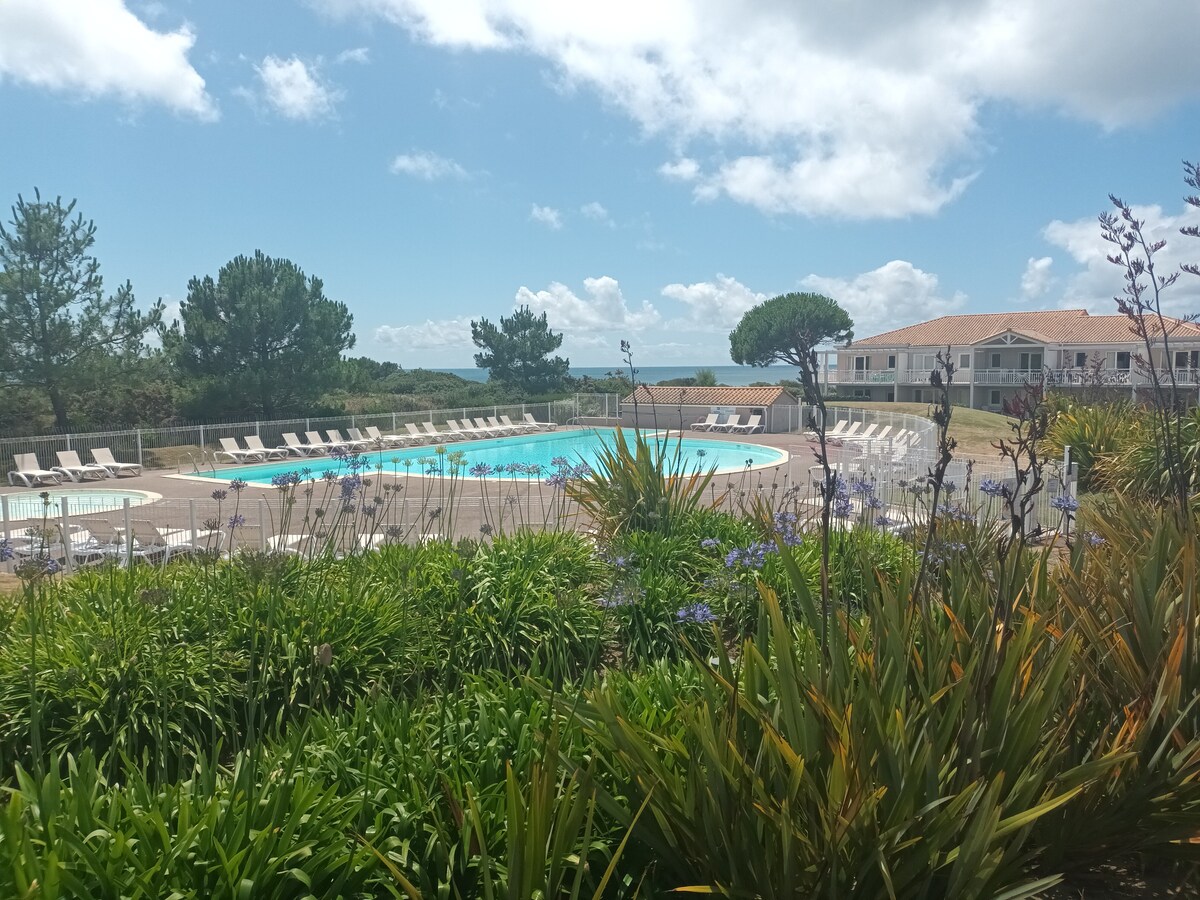 🌟Vous apprécierez sa magnifique vue sur le Lac et jardin, sa proximité de la plage du Veillon et du golf.🌟 Appart lumineux , chambre séparée avec 1 grand lit, WIFI, situé au 1er étage avec balcon et terrasse. 🌊💫ACCÈS gratuit piscine centrale avec bracelet L'espace aquatique du village (avec les toboggans) sera ouvert aux résidents et vacanciers Fin Avril au 12 sept. - 🏖️Plage du Veillon 1 km5 à pied p/chemin ou à vélo. - 🅿️Parking gratuit au pied de la rés. + parcs à vélos