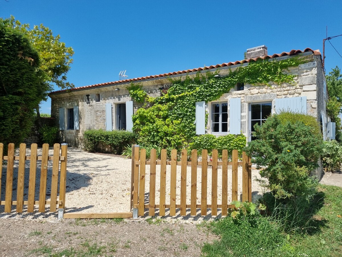 Unabhängige Unterkunft im Herzen der Weinberge, mit Einbauküche, Duschbad und Zugang zum Garten, Möglichkeit des Fahrradverleihs, um den Flow Velo zu erkunden, der vom Dorf aus entlang der Charente verläuft. Der Garten mit mehreren freilaufenden Hühnern ist ruhig und lädt zum Ausruhen und Entspannen ein. Für ein maximales Loslassen biete ich Saugmassagen aus aller Welt an. Die Unterkunft ist 1 km von der Charente und 5 km von den Geschäften und einem Strand entfernt (Chateauneuf)