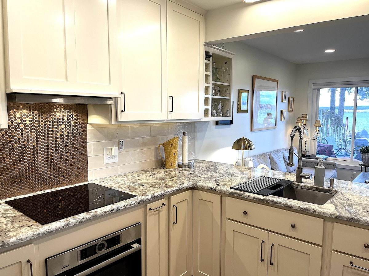 Completely renovated, this lovingly designed, modern 2-bed, 2-bath, 1,000 sq. ft. cottage - filled with natural light - offers a cozy, elegant vacation and features an office with a very comfy pull-out memory-foam, queen couch-bed for the 3rd bedroom. (Extra Cleaning Fee of $100 when office converts to bedroom.) Located lakefront just 1 mile from Chautauqua Institution, the home has a dock & a boat slip just steps from the porch. Enjoy spectacular views downstairs and from the master bedroom.