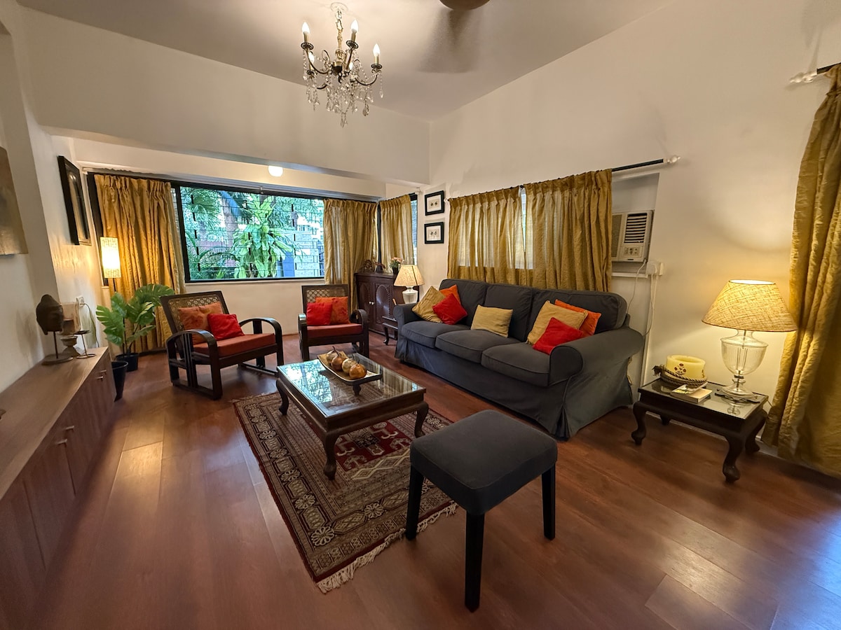 Located in the heart of Bandra: one of the city’s coolest neighbourhoods, this ground-floor apartment sits on a quiet lane, just a short walk from the beautiful Carter Road seafront. This is a serene, family-friendly home designed for guests seeking a peaceful stay. We welcome responsible visitors who intend to use the space respectfully. Please note, this is a strictly no-smoking apartment and is not suitable for parties or social gatherings.