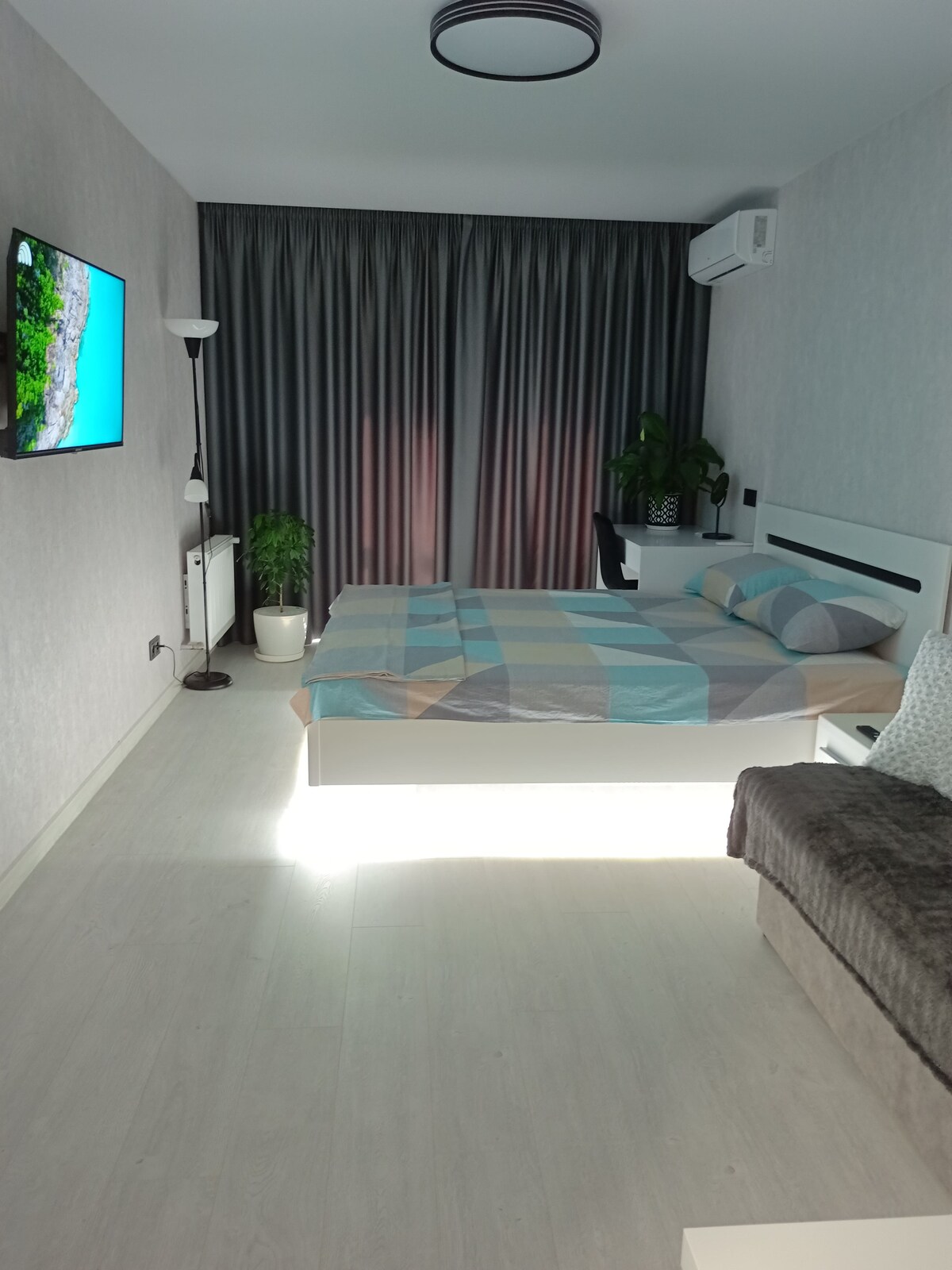 Die Wohnung hat alles, was du für einen angenehmen Aufenthalt benötigst: - ein Bett mit einer orthopädischen Matratze - Spezieller Arbeitsplatz - ein Ankleidezimmer für Dinge - leistungsstarke Klimaanlage - Smart-TV im Zimmer und in der Küche - alle Geräte und Utensilien zum Kochen Die Wohnung befindet sich in einem gemütlichen Wohnkomplex mit eigenem geschlossenem Gelände an der Dnjepr-Uferpromenade. Es gibt Cafés, Restaurants, Lebensmittelgeschäfte und andere Geschäfte, einen Sportkomplex, kostenlose Parkplätze für Autos rund um das Haus und daneben.