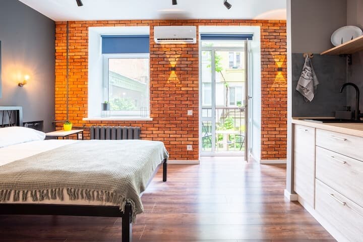 Dieses Industrieloft befindet sich im Herzen des historischen Zentrums von Kiew, 3 Gehminuten von der U-Bahn-Station Olimpiyskiy-Stadion entfernt, im 4. Stock eines zaristischen Gebäudes. Es wurde 2021 renoviert und ist geräumig und komfortabel. Es ist für 2 Personen geeignet, aber bis zu 4 können darin schlafen. Ideal für junge Abenteurer und Paare. Die Aussicht auf Kiew vom Balkon ist fantastisch!