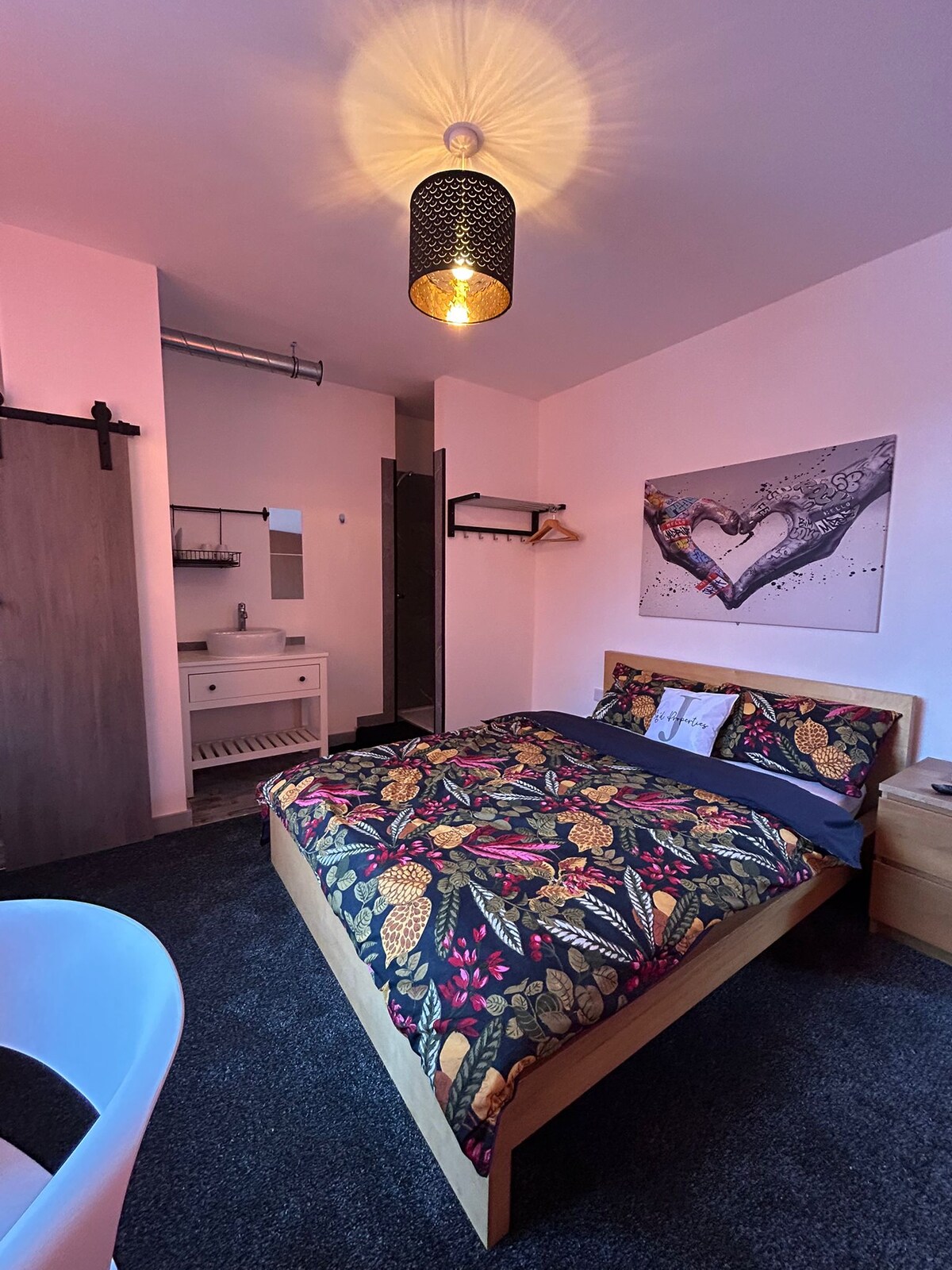 Das Crewe Coach House liegt in der schönen, historischen Stadt Crewe, 0,5 Meilen vom Hauptbahnhof Crewe entfernt und bietet moderne Unterkünfte mit modernen Annehmlichkeiten sowie kostenfreiem WLAN und Parkplätzen. Das Crewe Coach House bietet dir den Komfort, den du verdienst. Für deinen Komfort ist diese Einzimmerwohnung mit offenem Design mit einem Flachbild-TV, einem Queensize-Bett mit Bettwäsche aus ägyptischer Baumwolle sowie einer Küchenzeile mit Mikrowelle, Geschirrspüler und Herd ausgestattet.