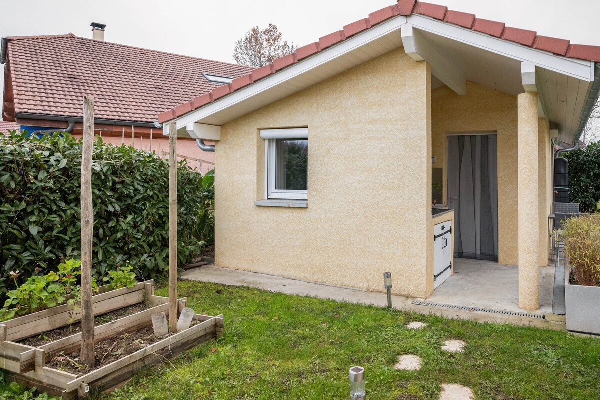 Midori und Christophe begrüßen Sie im Weiler Ballon. Schöne Unterkunft, komplett renoviert im Erdgeschoss eines Einfamilienhauses. Ideal für eine, 2 Personen oder Familie mit 2 Kindern. 3 Zimmer: 1 Hauptraum, Wohnzimmer mit 1 Doppelbett und Zugang zum Garten. 1 voll ausgestattete Küche. 1 Badezimmer vom Hauptraum aus zugänglich. Zusätzlich: 1 Zimmer mit 2 Einzelbetten. Am Fuße des Jura, zwischen Fluss und Bergen, auf den Höhen von Valserhône, 30 Minuten mit dem Zug von Genf entfernt.