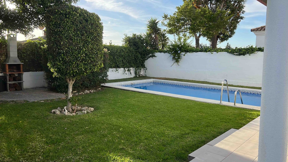 Wunderschönes Haus, zentral gelegen in einer ruhigen Wohngegend zwischen dem Zentrum von Chiclana und den fantastischen, feinsandigen Stränden der Costa de la Luz. Mit viel Liebe zum Detail eingerichtet und mit Besonderheiten wie der großen mit einer ausgefallenen Holzkonstruktion überdachten Terrasse und dem gemauerten BBQ-Bereich mit Tresen bietet sich Dos Amigos für einen gelungenen Urlaubs an. Ein Salzwasserpool ( 6 x 3 m )steht den Gästen exklusiv zur Verfügung.