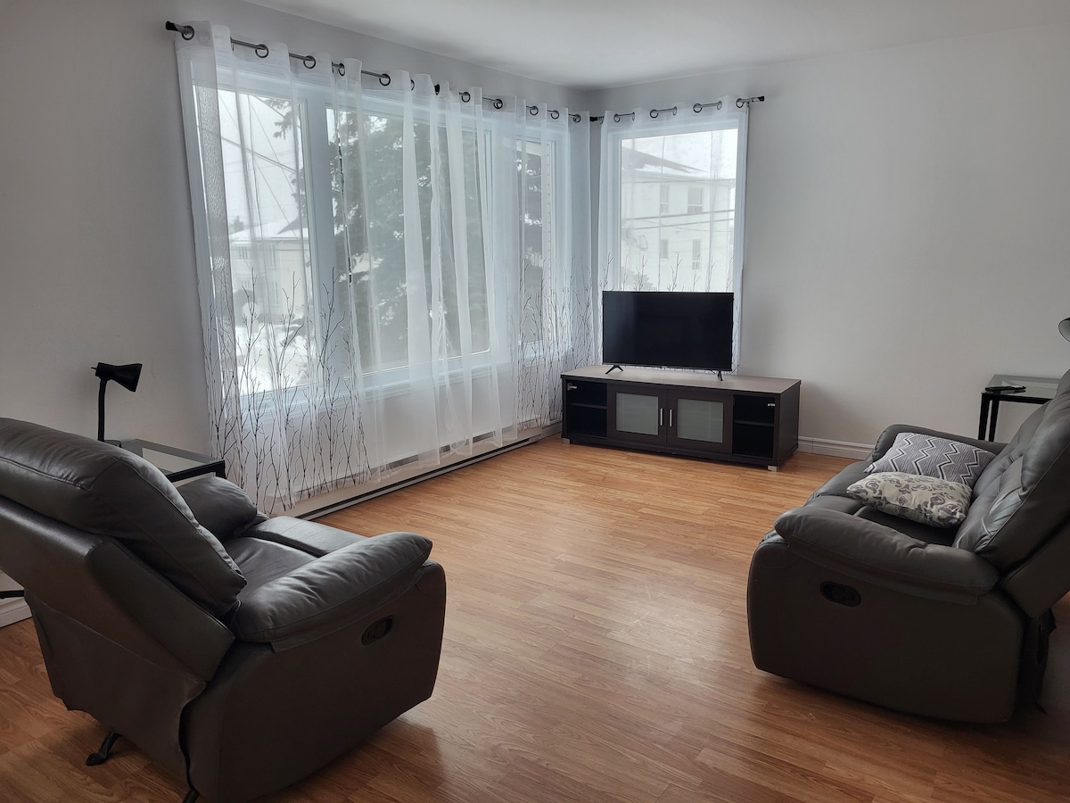 Gemütliche Wohnung für mindestens 4 Personen. Möglichkeit, 1 weitere Person gegen einen Aufpreis unterzubringen (30 $ mehr pro Nacht). Das dritte Zimmer verfügt über ein Campingbett. Ganz in der Nähe des Stadtzentrums und nur wenige Minuten zu Fuß von einem Lebensmittelgeschäft und etwa 10 Minuten zu Fuß vom Herzen des Stadtzentrums entfernt, wo sich viele Restaurants, Geschäfte, Cafés, SAQ usw. befinden. Einfacher Zugang zum Radweg.