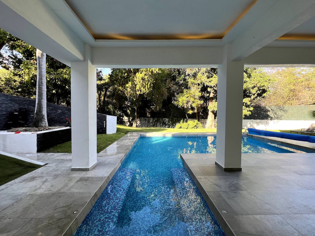 Amplio y encantador departamento, con alberca privada a temperatura ambiente, para su mayor comodidad esta diseñado para que lo ocupen 4 huéspedes, máximo 6 (costo adicional), ideal para parejas y familias pequeñas que desean salir de la rutina En auto: 05 min de Mega Soriana y hacienda Casasano 10 min a ex hacienda Santa Inés, Plaza Atrios (Walmart, Liverpool, Cinemex, bares y centro de Cuautla) 30 min de Yecapixtla