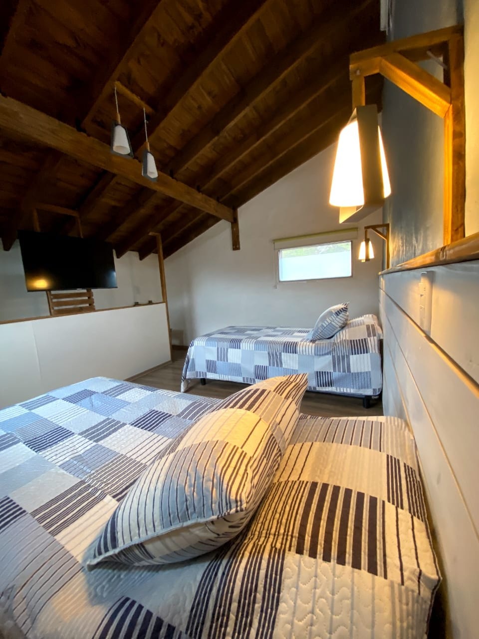 A 200 metros del centro y de los senderos Laguna Torre y Reserva La Lagunita. Equipado para 2 personas. Habitación amplia en 1° piso, con 1 cama Extra King Size o 2 camas individuales de plaza y media. Baño privado en planta baja, WiFi. Cocina completamente equipada (estractor, hornallas, horno, heladera, cafetera, tostadora, pava eléctrica y filtro de agua). Estacionamiento no techado, ropa de cama, toallas y calefacción. Promovemos prácticas de cuidado del agua y separación de residuos.