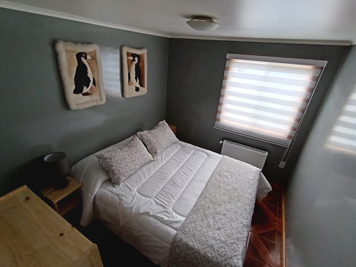 Unschlagbare Lage 2 Minuten vom Busbahnhof und 10 Minuten vom historisch-kommerziellen Viertel von Puerto Natales entfernt. Sie haben Zugang zu einer separaten Hütte mit Bad nur für Sie und 2 Schlafzimmern, mit einem Doppelbett und einem weiteren mit einem Etagenbett. Sie haben heißes Wasser für die Dusche, WLAN und Kabel-TV. Du hast Gasheizung und das gesamte Küchenzubehör, damit du kochen kannst. Ein weiterer Raum, den Sie sehen können https://abnb.me/zkQ8MQGmiub Fragen Sie nach dem Wasch- und Trocknungsservice.