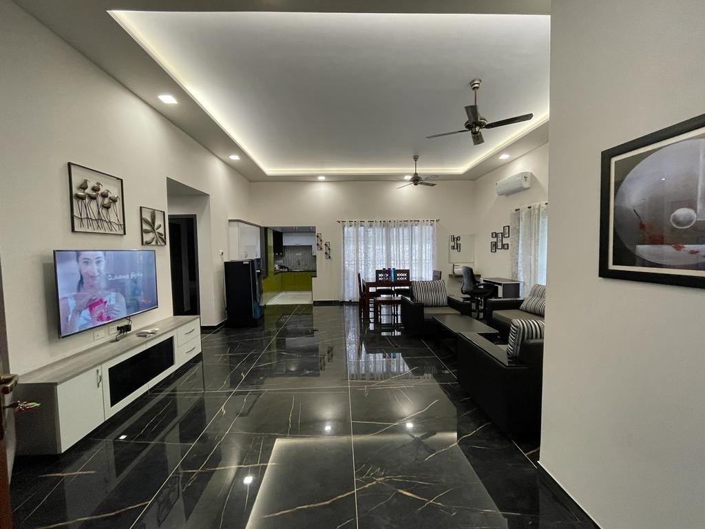 Relax with the whole family at this peaceful place to stay. Very new place Comes fully furnished with TV, WIFI, AC, king size bed, fully equipped kitchen with fridge and water purifier along with gas for cooking. Has dressing room and table and attached bathroom. Property also has Provision for EV car charging in parking lot. If you are looking for a peaceful, no fuss place to stay hardly 10km from Meenakshi Amman temple and accessible to highway and center of city this is the right place