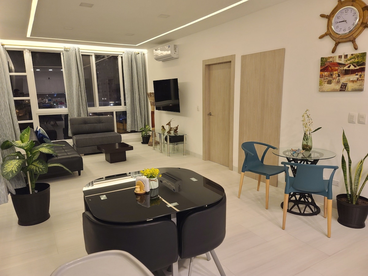 Genieße deinen erholsamen Aufenthalt in der Suite, nur 2 Blocks vom Strand Chipipe und zwei Blocks vom Malecón de Salinas entfernt. Dieser Raum verfügt über ein Zimmer mit einem geräumigen und komfortablen Bett, mit Arbeitsbereich, Klimaanlage, Highspeed-WLAN, Smart-TV, einer ausgestatteten Küche und einem einwandfreien Badezimmer mit heißem Wasser. Es verfügt über eine kostenlose private Garage auf dem Grundstück für eine mittelgroße Limousine oder SUV.
