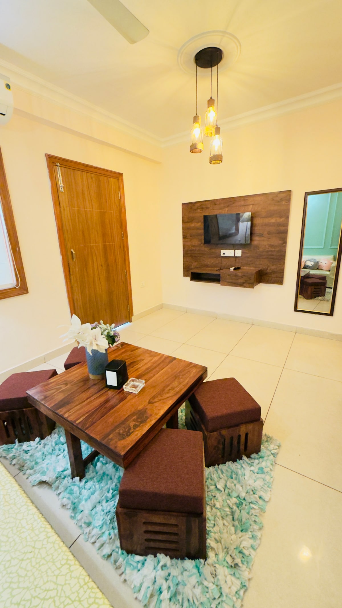 Willkommen in unserer geräumigen 2-Zimmer-Wohnung, perfekt für Familien oder kleine Gruppen! Jedes Schlafzimmer ist durchdacht auf Komfort ausgelegt und verfügt über gemütliche Betten und ausreichend Stauraum. Der offene Wohnbereich verfügt über eine komfortable Lounge und eine voll ausgestattete Küche, die sich ideal zum Entspannen und gemeinsamen Kochen eignet. Genieße moderne Annehmlichkeiten, Highspeed-WLAN und einen schönen Essbereich. In einem pulsierenden Viertel gelegen, bist du nur wenige Schritte von lokalen Sehenswürdigkeiten, Geschäften, Restaurants und 9 Minuten von der Gaur City Mall entfernt.