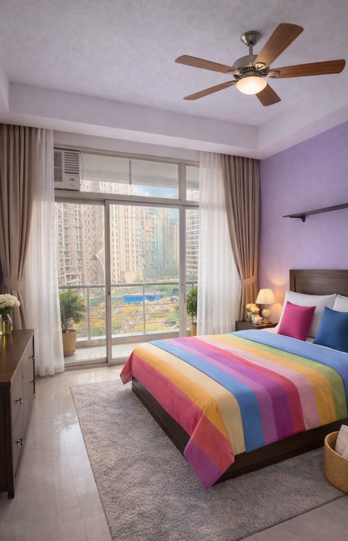 Eine schicke und gemütliche 2BHK-Wohnung mit Blick auf die Stadt