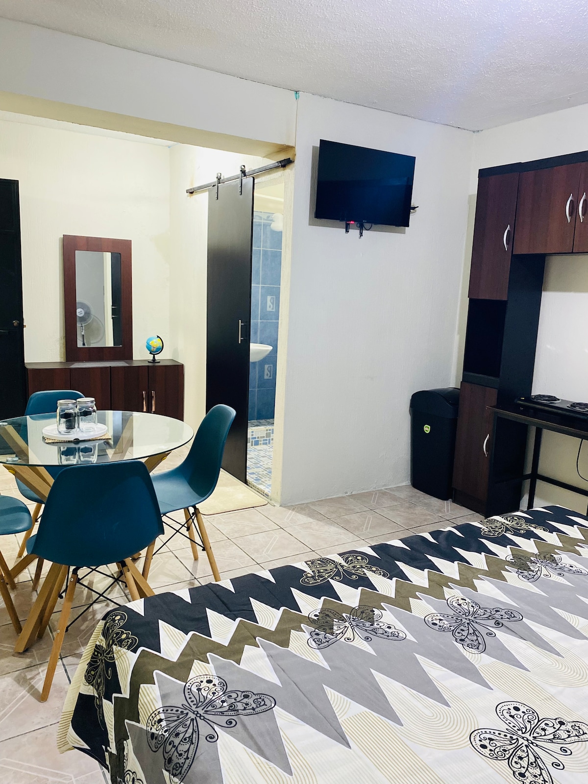 Disfruta de una estancia cómoda y elegante en nuestro apartamento, ubicado a solo 7 cuadras de la majestuosa Basílica de Esquipulas. Perfecto para parejas, amigos o familias. Este acogedor espacio cuenta con aire acondicionado, agua caliente, internet rápido y una cocina completa equipada con estufa y refrigeradora, ideal para preparar tus comidas. El parqueo es enfrente de la propiedad donde es un lugar seguro y tranquilo. De igual forma tenemos cámaras exteriores para tu seguridad y confort.