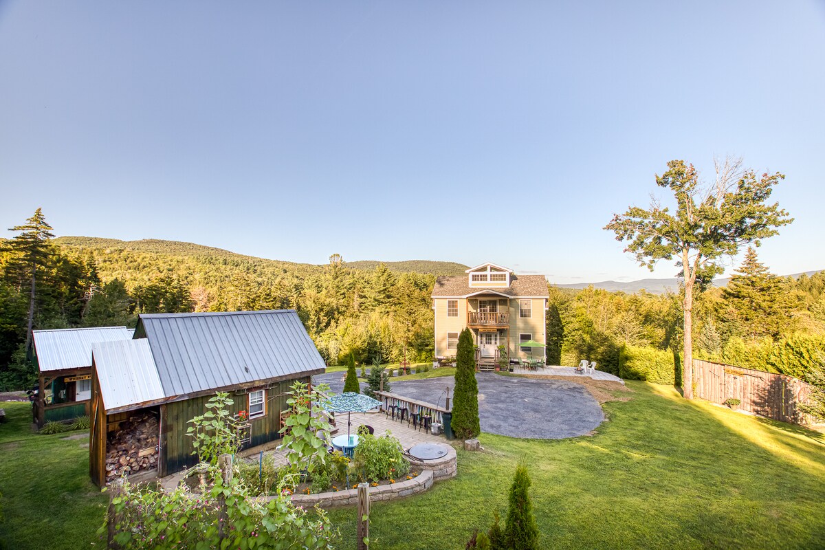 Peaceable Nation at Sugarbush Mt. Ellen, a world class experience at the foot of Mt Ellen Sugarbush and on the Catamount X-C ski Trail is available as a fun group rental for 2-4 people. The entire cabin complex is yours! Enjoy the The Bear Den, a rustic cabin with Loft (Queen) and pull out Queen, the Whiskey Bunkhouse with a full size and a drop down table twin bed if requested, This charming Village is part of a larger compound. Stunning views. Winter tubing run! One well behaved pet allowed