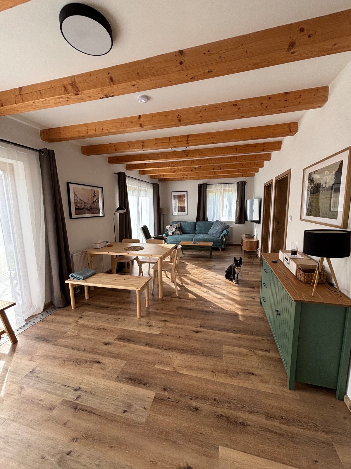 Du hast die ganze Wohnung für dich. 2 Betten befinden sich im Schlafzimmer, 2 Betten auf einem Schlafsofa mit hochwertigen Matratzen. Genieße die große Terrasse mit Sitzgelegenheiten. Unsere Familie wohnt im Erdgeschoss, es gibt eine weitere Wohnung im Dachgeschoss, die an die Wohnung angrenzt. Die Gäste schätzen den Blick auf den Teich, Wandern oder Radfahren in nahegelegenen Wäldern oder die Möglichkeit, die umliegenden Kulturdenkmäler zu besuchen. Das Haus steht in einem Dorf in der Nähe von Jindřichův Hradec. Genieße eine erholsame Pause, egal ob du auf der Durchreise bist oder ein paar Tage bleiben möchtest.