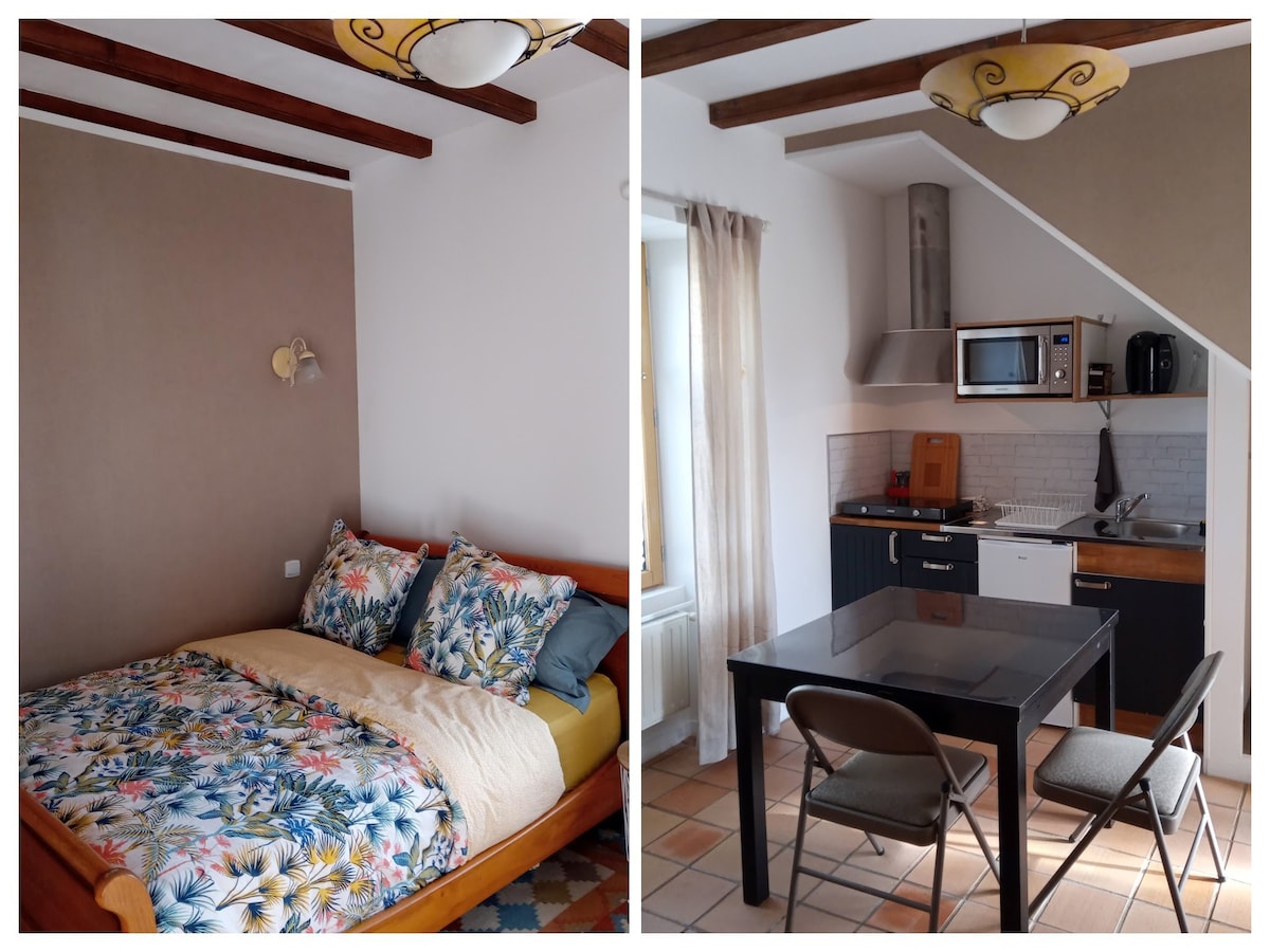 Die Unterkunft Sie werden sich wie zu Hause fühlen, sie befindet sich in der Nähe des Stadtzentrums, im Erdgeschoss einer Residenz, die gerade 2021 renoviert wurde. Sie können auf einem kostenlosen gesicherten Parkplatz hinter Ihrer Unterkunft parken. Die Wohnung besteht aus einem Eingang, einem Ankleidezimmer, einem Hauptraum mit einem Schlafsofa für 2 Personen, die Bettwäsche zur Verfügung gestellt werden Eine offene Einbauküche, Ein SDE, Wifi, Fernseher Ein Keller für Ihre Fahrräder, Etc Waschmaschine und Trockner stehen in der Residenz zur Verfügung