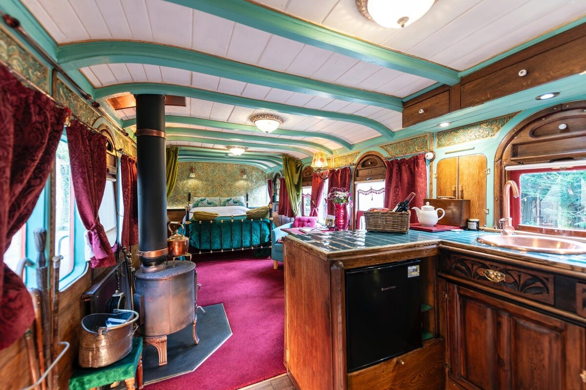 WELCOME TO FLOATING HOMESTAYS An adorable pet-friendly, romantic hideaway in heart of Manchester. Central heating and wood burner. Quirky interior inspired by 1950’s Havana. Showpiece is an honesty bar with wine, spirits & cigars. Kitchen equipped for cooking with some light breakfast provided (coffee/tea/cereal/milk/OJ). Shower/sink/toilet. Double bed & single couch. Bedroom overlooks an attractive plant filled deck to enjoy the city whilst remaining sequestered from the outside world.