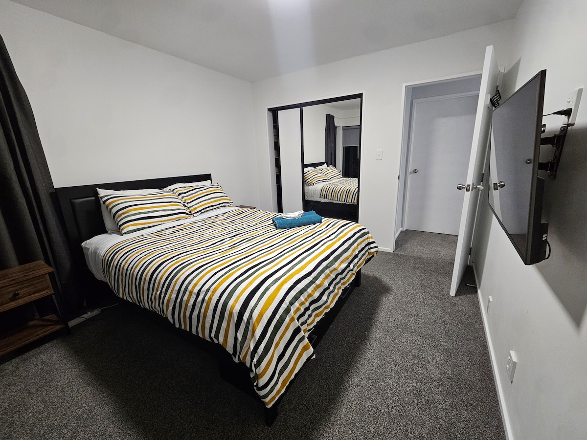 Cozy downstairs room offers great value for travellers who need a simple, comfortable place to stay. The room is next to the stairs and shares a bathroom with our family, so there can be early‑morning noise as the kids get ready for school. If you’re an early riser or don’t mind household sounds, it’s a perfect fit. You’ll have access to the shared kitchen, dining area, and laundry. We’re right beside the golf course and close to shops, buses, pubs, the beach, and the city centre.