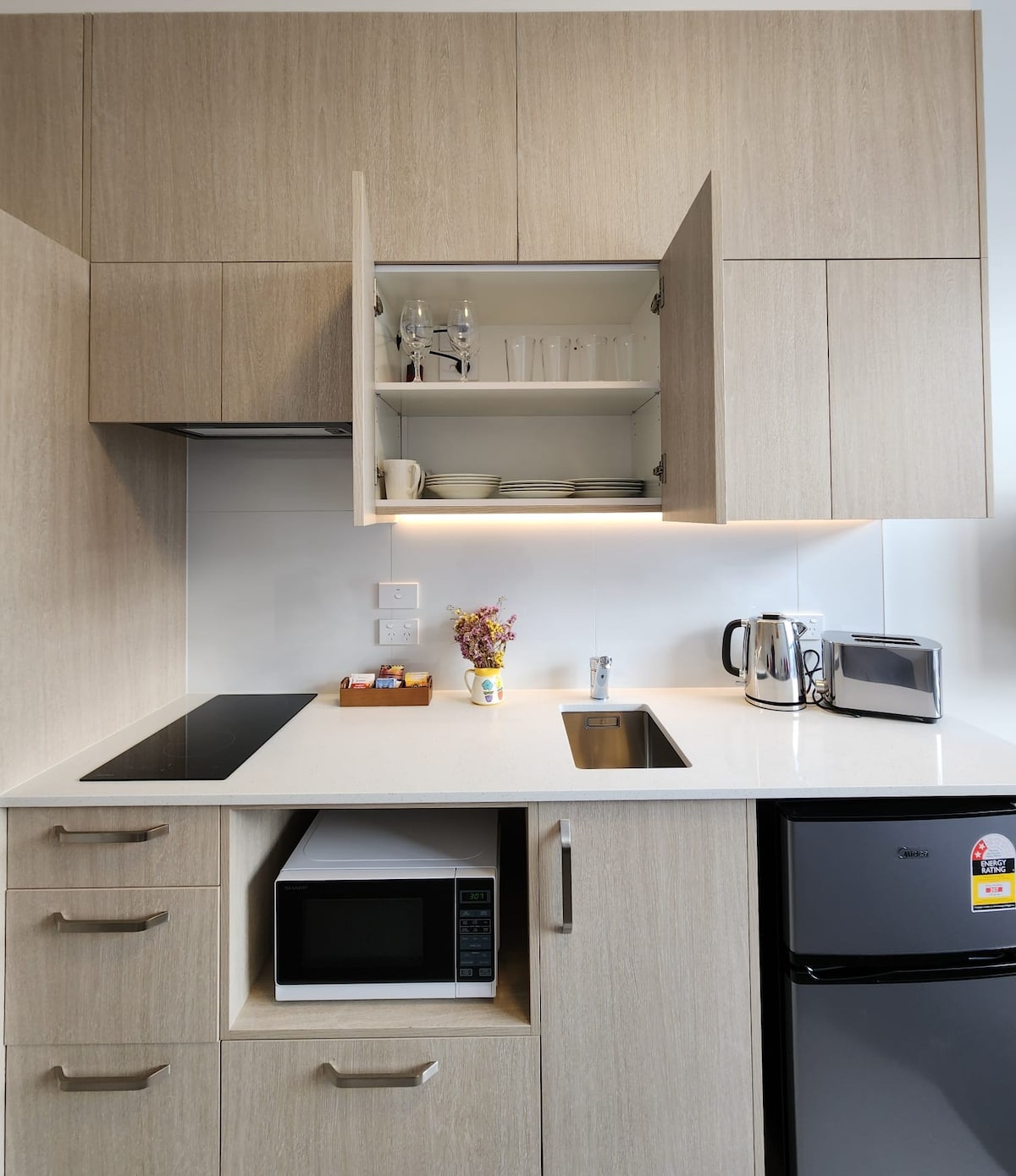 Unsere Apartments mit einem Schlafzimmer bieten einen sehr geräumigen und komfortablen Raum, in dem Sie mit separaten Schlafzimmern und einer Küchenzeile übernachten können. - Kostenloses WLAN mit mehreren Geräten - Kostenloser CBD-Parkplatz -LCD-Fernseher mit Netflix - Die Betten sind Queensize mit einem ausziehbaren Schlafsofa, das einen zusätzlichen Schlafplatz bietet. Betten für bis zu 3 Gäste -Geräumiges offenes wohnen. - Private Dusche oder Badewanne im Badezimmer -Kochmöglichkeiten auf Anfrage