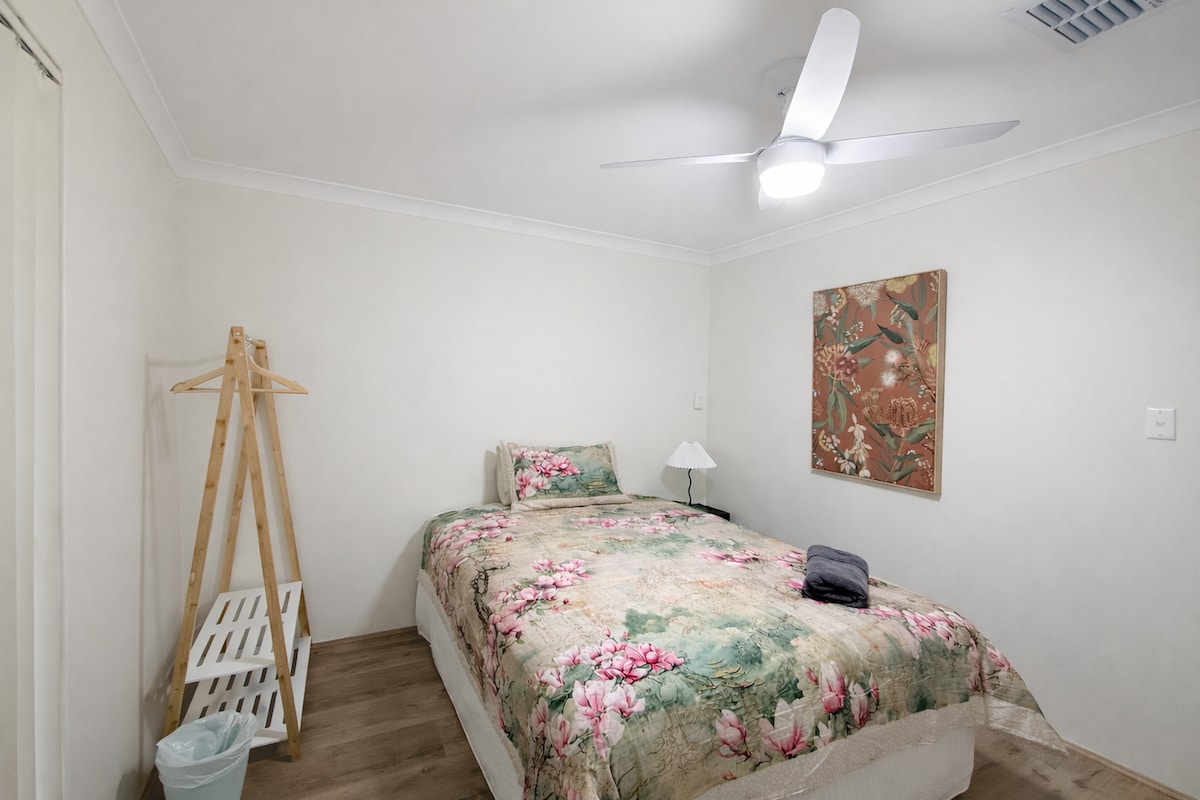 Enjoy a peaceful stay in a clean, cozy room located in the heart of Willetton. The house sits in a quiet cul-de-sac, just minutes from Willetton Senior High School, Southlands Shopping Centre, and public transport to Perth city. Guests share a modern kitchen, dining area, and laundry. The room comes with a comfortable bed, study desk, and wardrobe — perfect for students, professionals, or travelers looking for a calm and convenient stay. Free Wi-Fi, street parking