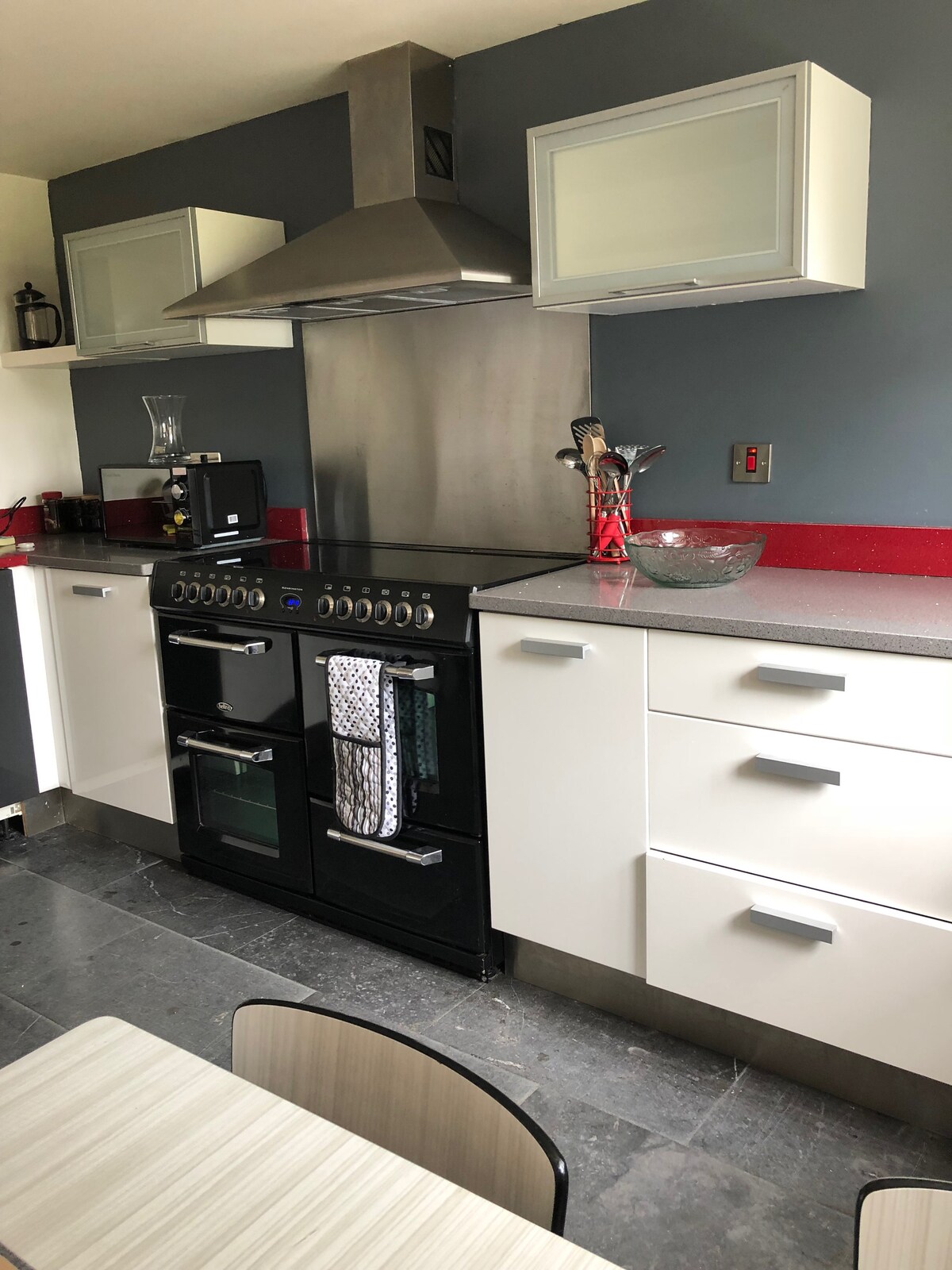 Der Anbau befindet sich in einem Landhaus auf eigenem Grund. Es befindet sich in der Nähe des Flughafens und der Marktstadt Otley, dem Tor zu den Yorkshire Dales, sehr gut geeignet für begeisterte Wanderer und Radfahrer. Gäste haben einen eigenen rollstuhlgerechten Eingang zur Veranda, Flur, Doppelzimmer mit WLAN-TV und DVD, Küchenzeile und Duschbad. Bitte beachte, dass die Küchenzeile kein Spülbecken hat. Parkplatz am Flughafen Ladestation für Elektrofahrzeuge Tee, Kaffee und Frühstücksutensilien Campingbett Sichere Aufbewahrung für Fahrräder