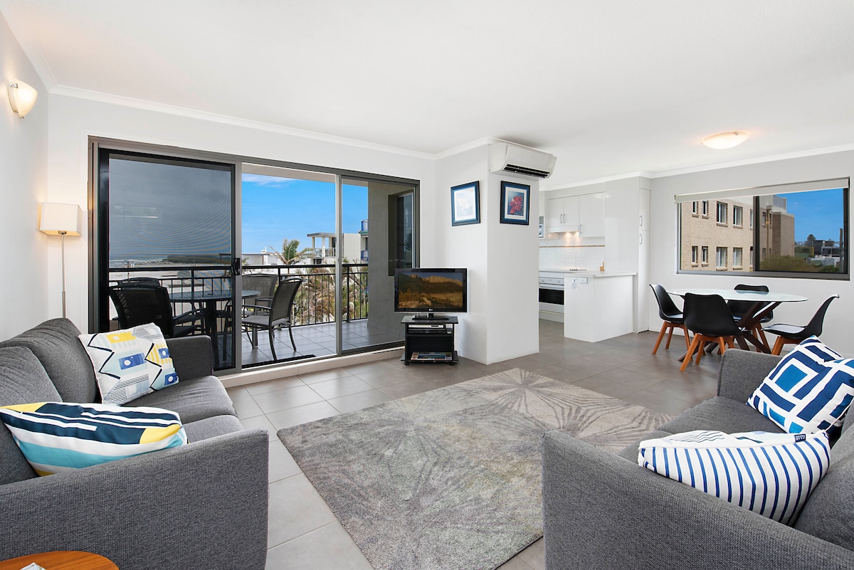 Absoluter Strand Happy Days @ Kings Beach # Warum wir es hier lieben: • Eine der dem Surf am nächsten gelegenen Wohnungen an der Sunshine Coast • Parke das Auto und gehe überall hin • Beobachte vom Balkon aus, wie die Kinder surfen und Strandcricket spielen • Fantastische Cafés und Märkte • Atemberaubende Aussicht auf die Inseln Moreton und Bribie • Zu Fuß zu 7 Eisdielen • Ozeanpool, Kino, Bowling in der Nähe • Schöne Spaziergänge die Küste hinauf und hinunter von deiner Haustür aus
