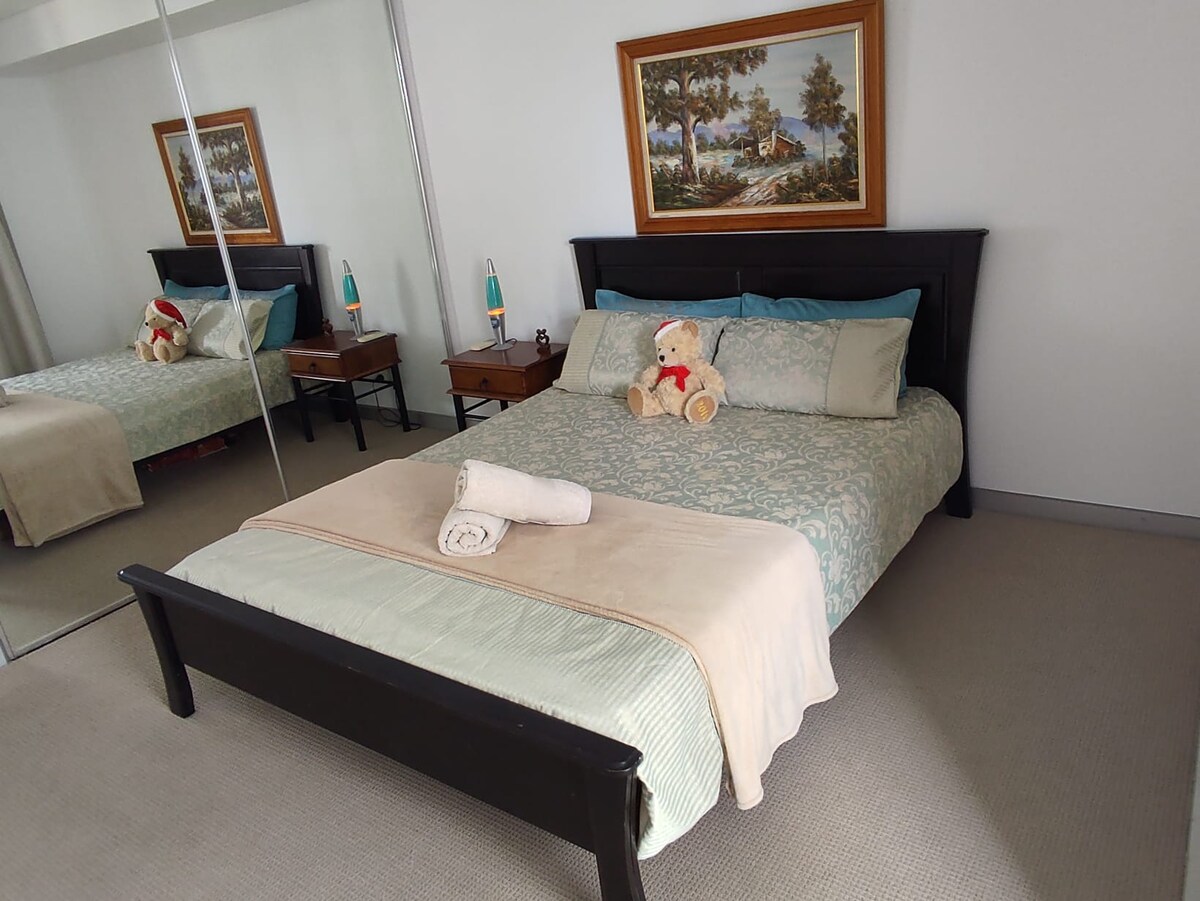 Diese gemütliche Unterkunft bietet - Einen Wohnbereich mit einem Kingsize-Einzelbett mit Massagefunktionen. - Separates Schlafzimmer mit einem Doppelbett – verfügbar für Buchungen von 2 oder 3 Personen. - Tee, Kaffee, Milch und einfaches Frühstück werden bereitgestellt. Völlig unabhängig mit eigener Küchenzeile, Mikrowelle, kleinem Backofen, Besteck und Pfannen - Badezimmer und Gäste-WC. Sehr praktisch für Geschäftsreisen, Studium oder Kurzaufenthalte. Kleine/mittelgroße Haustiere willkommen, extra 25 $ pro Nacht! Gib bitte dein Haustier in der Buchungsnachricht an!