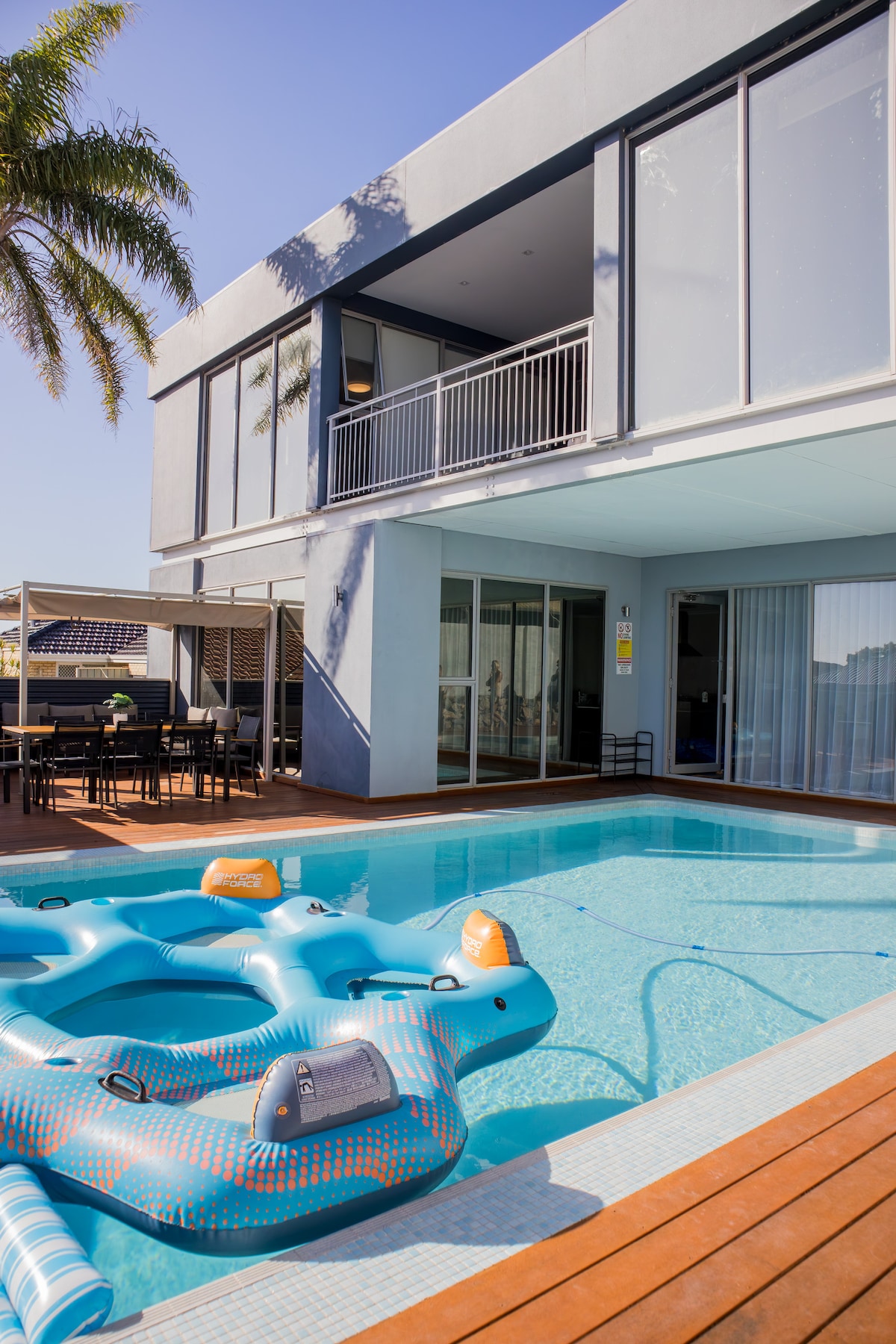 Turquoise Waters Retreat - a Stunning Beach House Retreat with a fully fenced private pool and a large enclosed garden great for the kids to run around in Escape to this serene beach house, the perfect getaway for families seeking relaxation and comfort. Located just a short walk or a 2-minute drive from Scarborough Beach, you’ll have cafes, restaurants, shops, and entertainment venues right at your doorstep, this beautiful retreat offers everything you need for a memorable stay.