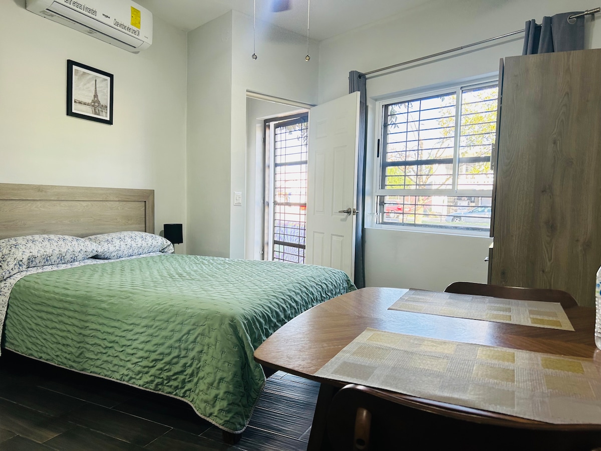 Nos encontramos en una colonia tranquila cerca de parques (60 metros), supermercados (700m), la UANL (9 min), plazas comerciales (5 min), restaurantes (800m), gimnasios, rutas de transporte público (a 2 calles). El lugar tiene entrada independiente con protección. El espacio cuenta con cama, espejo grande, ropero, burro de planchar, mesa y silla de trabajo, un pequeño refrigerador, fregadero y microondas. Al fondo encuentras el baño completo.