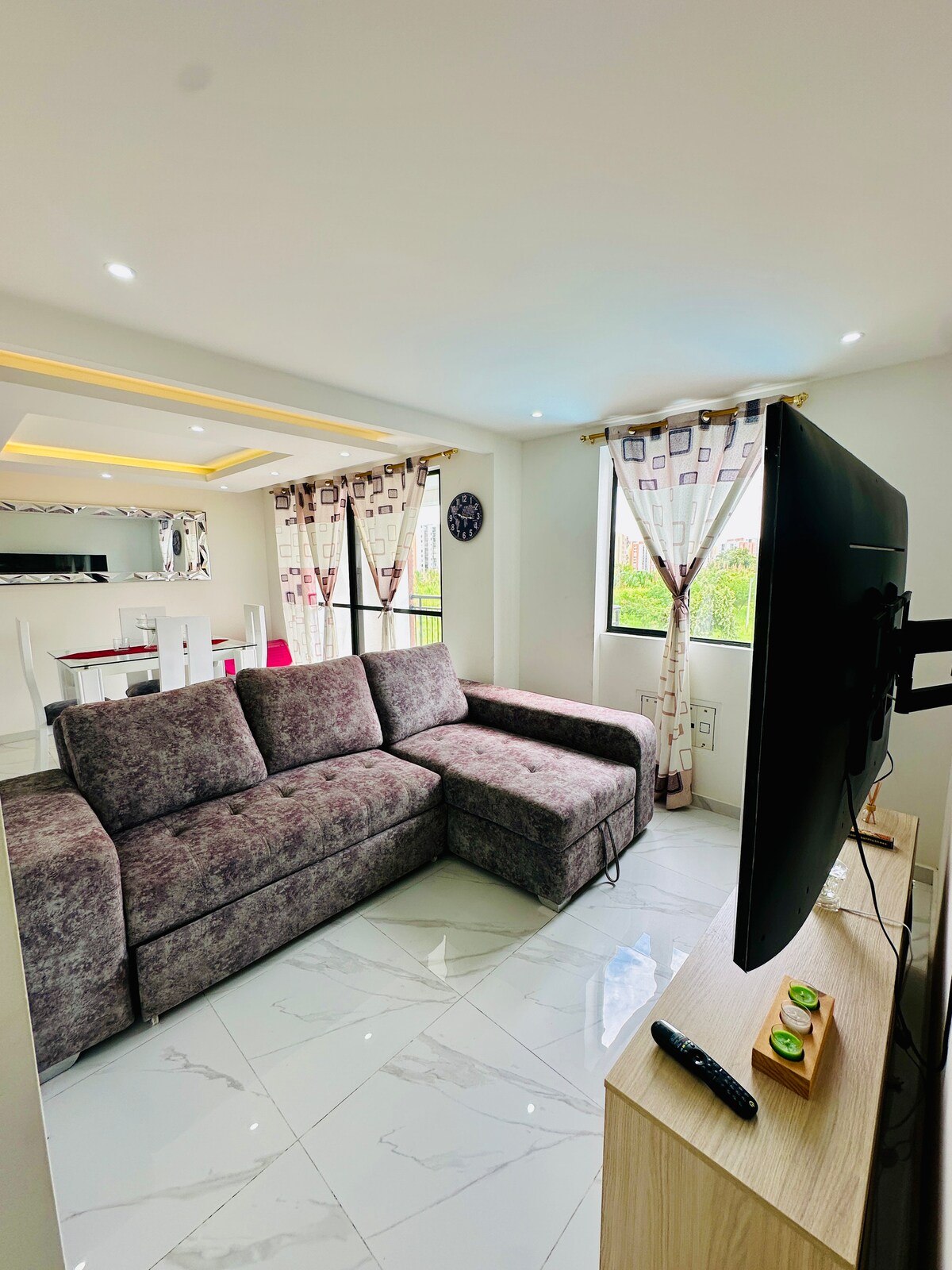 Disfruta de este hermoso, moderno y céntrico apartamento. Está bien dotado de todo lo que puedas necesitar, para que tu estadía sea placentera. En la zona encontrarás : plaza y tiendas de mercado, farmacias, restaurantes, discotecas, etc. A 10 minutos hospitales, clínicas, canchas panamericanas, estadio y centros comerciales.