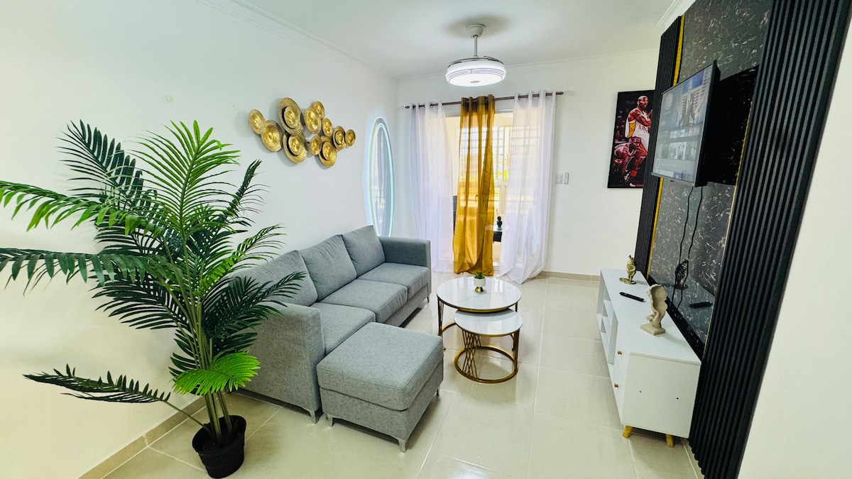 🏠 Gemütliche Wohnung in Ciudad Juan Bosch. Genießen Sie eine komfortable 2-Zimmer-Wohnung mit Klimaanlage, Bad, ausgestatteter Küche, Wohnzimmer, Esszimmer, TV im Wohnzimmer und im Hauptschlafzimmer. Es verfügt auch über eine Waschmaschine, einen Trockner, einen Wechselrichter, Warmwasser, gemeinsames Gas, WLAN, 24-Stunden-Strom und 24/7-Sicherheit. Ideal für ruhige und sichere Aufenthalte.
