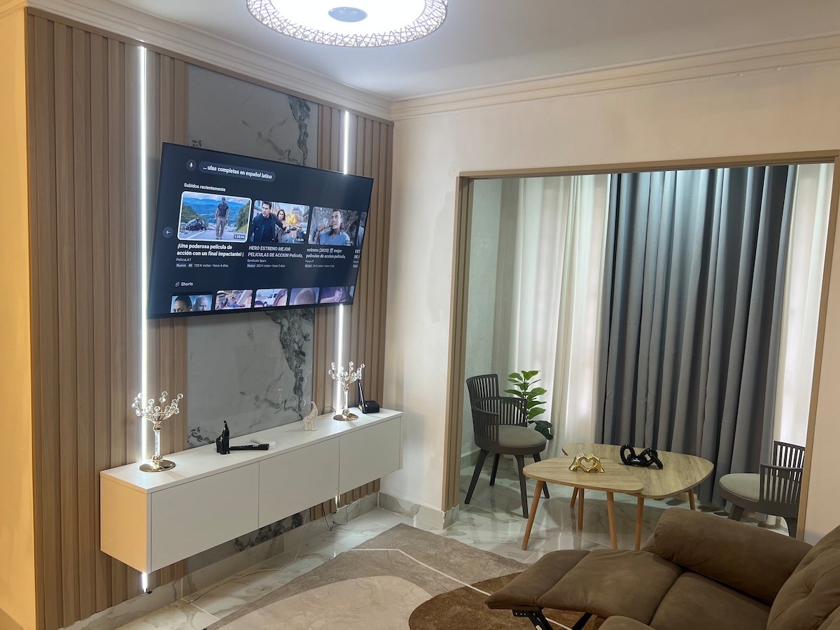 Modern 3BR Apartment in a Safe & Quiet Community ✨ Comfortable first-floor apartment in Ciudad Juan Bosch, perfect for families, groups, business travelers, or short stays near the airport. Bright living and dining area with A/C, fast WiFi, and Smart TV. ✔ Fully equipped kitchen ✔ Master bedroom with A/C, Smart TV & walk-in closet ✔ Two additional bedrooms with ceiling fans ✔ Private parking included ✔ Easy self check-in Comfortable, convenient, and relaxing stay. Book now 💚