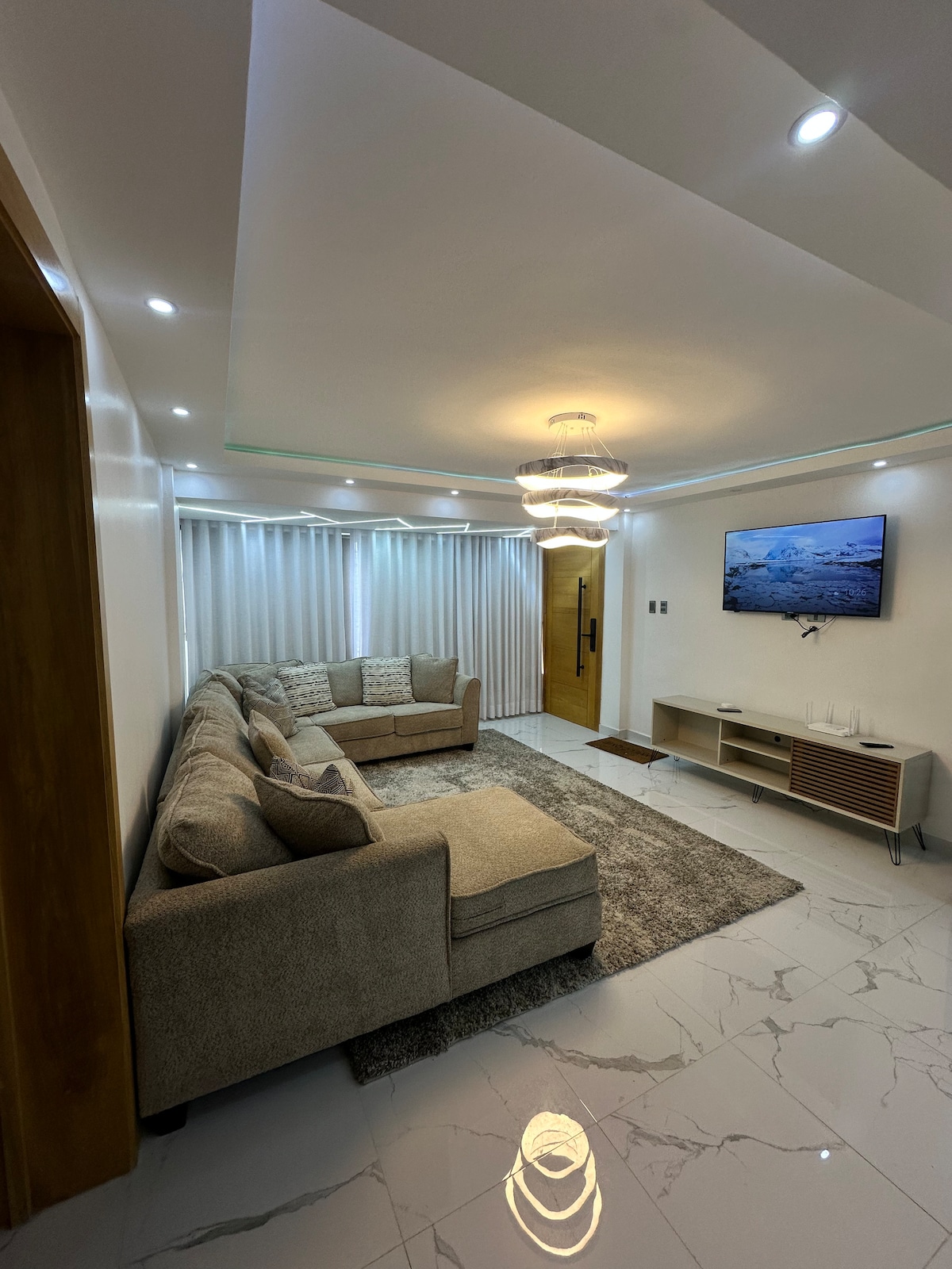 Diese luxuriöse Wohnung verfügt über die wichtigsten Annehmlichkeiten für einen unvergesslichen Urlaub. Wir verfügen über eine Minibar, einen Pool mit unendlicher Aussicht, einen spektakulären Balkon, im Zentrum der Stadt, neben der Galerie 360, 3-5 Minuten mit dem Auto, je nach Verkehrslage, von der Agora Mall entfernt. HINWEISE. Am Tag vor der Ankunft des Gastes sollten Sie Ihre Ausweise für Erwachsene übermitteln. Über den Airbnb-Messenger.