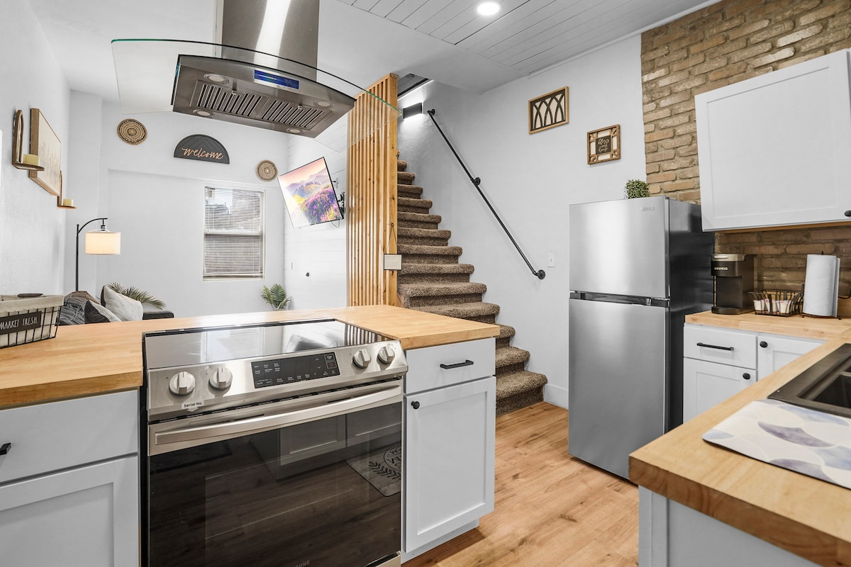Dieser unvergessliche Ort ist alles andere als gewöhnlich. CityViews del Rey ist ein wunderschönes Gästehaus, das im Herzen von El Paso gebaut und fachmännisch zusammengestellt wurde. Im Inneren findest du eine Auswahl aus DREI Betten/Schlafbereichen (Queensize-Bett + Doppelbett (großes Loft) + Twin XL-Bett (Mini-Loft) mit Memory-Schaumstoffmatratzen), eine voll ausgestattete winzige Küche, Roku-TV, WLAN, Designer-Dekor und ein eigenes Bad mit Dusche!