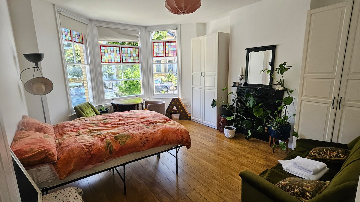 Wunderschöne Hackney-Wohnung mit Blick direkt auf den Park. Sonnendurchflutete, viktorianische Zeit mit hohen Decken und originalen Parkettböden. Ruhig und friedlich und nur einen Steinwurf von allen Annehmlichkeiten von Clapton, London Fields und Dalston entfernt! Dies ist mein Zuhause, keine Wohnung, die ich exklusiv auf Airbnb vermiete, also sei dir bitte bewusst - es ist ein Zuhause, kein Hotel :) Das Schlafsofa, das eingerichtet werden kann, aber lass es mich im Voraus wissen, falls du es brauchst