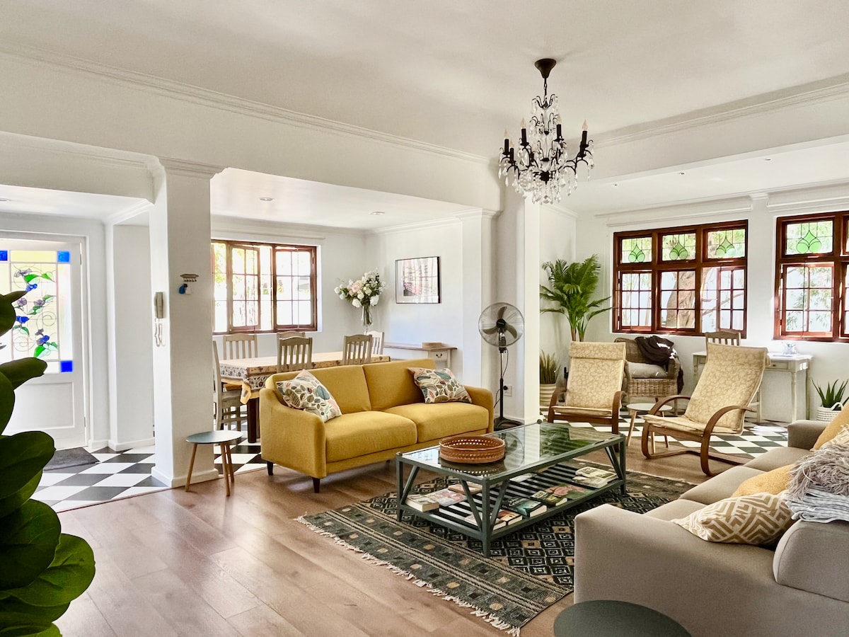 Lass dich im Herrenhaus von Mount Pleasant aus dem 19. Jahrhundert von der Eleganz vergangener Zeiten verwöhnen. Speise im Freien neben deinem privaten Pool in diesem historischen Anwesen unter dem Tafelberg. Entspanne dich bei einem Glas Wein aus dem Kap in der anmutigen und romantischen Gästesuite mit eigenem, mit Weinreben bewachsenem Garten oder kuschel dich in einen Sessel am großen Steinkamin. Die geräumige und luftige, offene Gästesuite ist ideal für Paare und junge Familien. Zentral im grünen Newlands gelegen, nur wenige Gehminuten von den berühmten Sportstadien UCT und SACS entfernt. Das Haus wurde kürzlich renoviert und ist ein Familienhaus, und das Anwesen von Mount Pleasant ist ein interessanter Teil der Geschichte von Kapstadt, die bis ins 18. Jahrhundert zurückreicht. Die Gästesuite ist ideal für ein Paar oder eine Familie geeignet und besteht aus: - einem großen offenen Schlafzimmer-Wohnzimmer (Schlafplätze 3 - 4) - eine voll ausgestattete Küche - einem Badezimmer mit Badewanne, Dusche und Doppelwaschbecken - einem privaten Sportbecken - einem privaten Garten mit Blick auf den Tafelberg und den Teufelsgipfel. Im Sommer sind Faulenzen am sonnigen Pool, Essen im Freien und ein traditioneller südafrikanischer „Braai“ (Grillen) ein Muss und im Winter bieten das knisternde Feuer, die voll ausgestattete Küche und der Fernseher einen warmen Rückzugsort. Die Schlafzimmer-Lounge ist offen gestaltet mit separater Küche und Badezimmer. Kingsize-Bett, ein Einzelschlafsofa und ein weiteres Einzelbett in der Suite für den 4. Gast, falls erforderlich. Kabelfernsehen und WLAN sind inbegriffen. Im Angebot sind Wein und Getränke, Wäsche- und Reinigungsservice. Weitere Extras, die verfügbar sein können, sind: Nutzung des baronialen Speisesaals für Tagungen (Plätze für bis zu 18 Personen) oder besondere Anlässe (nur tagsüber). Bitte beachte: Der Pool ist NICHT eingezäunt und befindet sich unmittelbar neben der Suite, also sei bitte besonders vorsichtig (daher wird der Platz nicht für Kinder empfohlen, die nicht schwimmen können). Privatgarten und Pool. Parkplatz abseits der Straße für 1 Auto. Nutzung des großen Esszimmers auf Anfrage. Gäste können absolute Privatsphäre genießen, aber die Familie und das Hauspersonal sind in der Regel zu Hause, um dich willkommen zu heißen und beantworten Fragen und Hilfe per Telefon oder SMS. Unsere freundlichen Hunde: Boris, Frankie, Josh und Pixel werden dich immer begeistert willkommen heißen (aber dein Garten und Flügel ist privat, damit die Hunde dich nicht stören). Newlands ist einer der ursprünglichen grünen Vororte von Kapstadt, der an die Residenz der Universität und des Staatspräsidenten grenzt. Schön und geschützt vor Sommerwinden und Cafés, Restaurants und Geschäfte sind nur einen Spaziergang entfernt. Newlands ist perfekt zentral für die meisten der beliebtesten Ausflüge in Kapstadt. Der Tafelberg und die Seilbahn, die V&A Waterfront, Strände, Weingüter und das Stadtzentrum sind alle innerhalb von 10-25 Minuten Fahrt erreichbar und Ubers usw. sind leicht verfügbar. Der Vorort Newlands selbst hat viele Attraktionen, aber um das volle Angebot von Kapstadt zu genießen, empfehlen wir, ein Auto zu mieten oder ein Taxi (Uber oder Call-Taxi) zu nehmen. Private Guides oder Fahrer holen dich auch direkt vom Grundstück ab. Flughafentransfers/Shuttles/Taxis stehen am Flughafen zur Verfügung oder können über ein Transferunternehmen gebucht werden. POOL Wichtig: Der Pool ist nicht mit einem Netz oder Zaun geschützt und liegt unmittelbar neben der Suite, also sei bitte vorsichtig und wir empfehlen die Suite NICHT für Kleinkinder/Kinder, die nicht schwimmen können. HAUSTIERE Wir können Haustiere auf Anfrage unterbringen, aber beachte, dass es hier Hunde gibt. EXTRAS Extras wie Wein können in bar oder über die SnapScan-App bezahlt werden. TAGUNGEN & VERANSTALTUNGEN Der baronale Speisesaal kann für besondere Tagungen und Tagesveranstaltungen gebucht werden (Preise/Verfügbarkeit auf Anfrage). Es ist ein schönes Zimmer und bietet Platz für 14-18 Personen. SHOOTINGS & LOCATION Das Herrenhaus Mount Pleasant und das Grundstück stehen möglicherweise für professionelle Foto-/Filmaufnahmen zur Verfügung. Dies müsste in besonderer Absprache direkt mit den Eigentümern oder ihren Vertretern erfolgen. Die Preise variieren je nach den Besonderheiten des Fotoshootings. (Bitte beachte: Die Nutzung des Gästeraums für kommerzielle Aufnahmen würde zusätzliche Kosten verursachen und ist nicht im Übernachtungspreis enthalten).